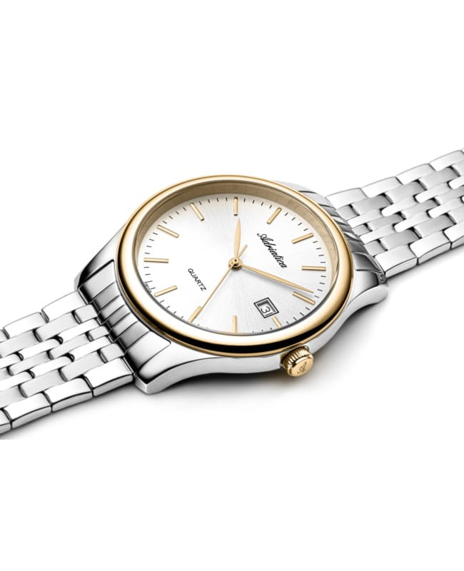 Часы Adriatica A1024.2113Q представляют собой идеальное сочетание элегантности и функциональности, разработанное для современных мужчин. Их стильный циферблат защищен сапфировым стекломСапфировое стеклоПрочный и надёжный материал из кристалла сапфира синтетического происхождения, характеризующийся особой твёрдостью и устойчивостью к царапинам и повреждениям., что придает дополнительную устойчивость к царапинам. Корпус из нержавеющей стали подчеркивает их изысканность и долговечность. Надежный кварцевый механизм с калибром RONDA 515 гарантирует точность времени, а водозащита WR 50 (5 ATM) обеспечивает защиту от воды в различных условиях. Браслет из нержавеющей стали  с раскладной застёжкойРаскладная застёжкаТакой тип застёжки используется только на браслетах из металла. Она никогда не раскрывается полностью, происходит разделение на 2 и более частей. Раскладывающая застёжка снизит вероятность потери часов к минимуму., гармонично дополняет общий дизайн и обеспечивает комфортное ношение на запястье. Часы оснащены функцией отображения даты в окошке в положении 3 часа, что добавляет практичности в повседневной жизни. БезельБезельВнешний ободок, закрепляющий стекло. В спортивных часах так называется поворотное кольцо с делениями на циферблате, выполняет роль таймера – замеряет отрезки времени на шкале. Неподвижный безель – элемент декора. Однонаправленно вращающийся безель на дайверских часах позволяет фиксировать моменты погружения и выныривания на поверхность. с PVD-покрытиемPVDУльтратонкое покрытие наносится в технике вакуумного напыления, сочетает в себе нитрид титана особой прочности со слоем золота или оксида хрома. Несёт в себе декоративную или защитную функцию..
