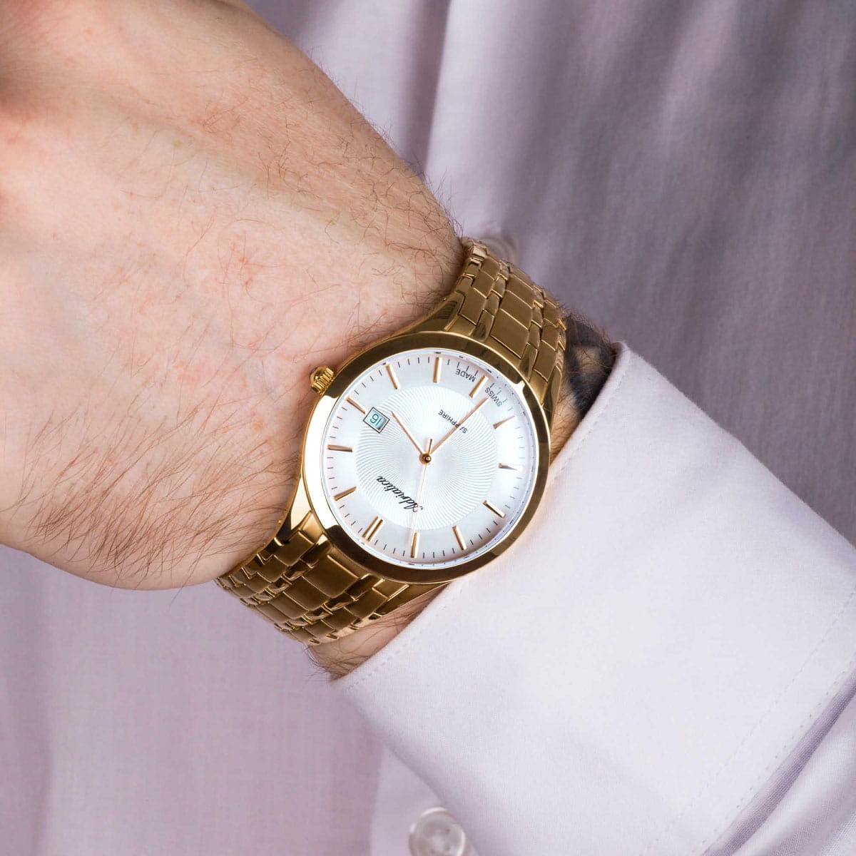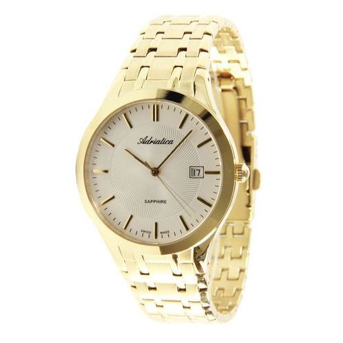 Швейцарские мужские наручные часы Adriatica Twin A1236.1113Q, кварцевый механизм с высокой точностью. Сапфировое стеклоСапфировое стеклоПрочный и надёжный материал из кристалла сапфира синтетического происхождения, характеризующийся особой твёрдостью и устойчивостью к царапинам и повреждениям. устойчивое к появлению царапин, обладающее высокой прозрачностью. Класс водозащиты: 50 метров, позволит защитить корпус от случайных брызг или капель дождя. Корпус часов изготовлен из стали с PVDPVDУльтратонкое покрытие наносится в технике вакуумного напыления, сочетает в себе нитрид титана особой прочности со слоем золота или оксида хрома. Несёт в себе декоративную или защитную функцию. покрытием. Часы оснащены оригинальным литым браслетом со съемными секциями, позволяющими регулировать длину. Браслет на раскладной застежке с фиксатором. Циферблат окрашен в белый цвет, центр которого украшен гильошированным рисунком в виде дуг, расходящихся от центра до длинных позолоченных маркеров часа.