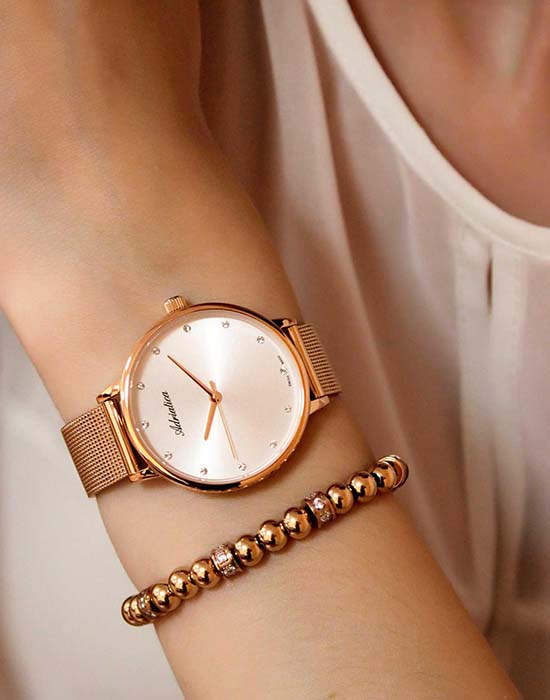 Женские часы с минеральным стеклом Adriatica A3573.9143Q, кварцевый механизм с высокой точностью. Класс водозащиты: 30 метров, позволит защитить корпус от случайных брызг или капель дождя. Корпус часов изготовлен из стали, розового цвета.