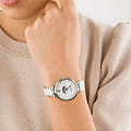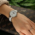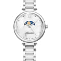 Женские часы Adriatica A3705.C18FQM представляют собой гармонию изысканности и функциональности, создавая идеальный аксессуар для тех, кто ценит качество и стиль. Эти швейцарские часы оснащены надежным кварцевым механизмом с калибром Ronda 788, который гарантирует точность и долговечность. Корпус, выполненный из нержавеющей стали, имеет диаметр 34 мм и толщину 7 мм, что придаёт ему утончённый и современный вид. Перламутровый белый циферблат, защищённый минеральным стекломМинеральное стеклоМинеральное стекло представляет собой искусственно выращенный минерал кварца. Такое стекло отличается особой устойчивостью к повреждениям и царапинам. Уступает по некоторым качествам сапфировому стеклу., добавляет элегантности и привлекает внимание. Особое внимание заслуживает браслет из нержавеющей стали с белыми биокерамическимиБиокерамикаБиокерамика — это материал, который на две трети состоит из керамики, на одну треть — из биопластика. Он сочетает в себе лучшие качества обоих материалов и обладает прочностью и шелковистой на ощупь текстурой. вставками, который обеспечивает комфорт и надёжность при носке, а ювелирная застёжка добавляет дополнительный акцент на изысканность. Функция отображения фазы луны придаёт часам уникальность и делает их не только стильным, но и функциональным аксессуаром. Водозащита уровня 50WR позволяет не беспокоиться о воздействии влаги, что увеличивает практичность часов в повседневной жизни. Часы Adriatica A3705.C18FQM — это символ швейцарского качества, сочетающий в себе современные технологии и классический дизайн.