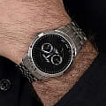 Часы Adriatica A8306.5114QF воплощают в себе элегантность и функциональность, идеально подходящие для современных мужчин, ценящих швейцарское качество. Их черный циферблат защищенный сапфировым стекломСапфировое стеклоПрочный и надёжный материал из кристалла сапфира синтетического происхождения, характеризующийся особой твёрдостью и устойчивостью к царапинам и повреждениям., заключен в корпус из нержавеющей стали диаметром 42 мм и толщиной 9 мм. Надежный кварцевый механизм с калибром Ronda 706 обеспечивает высокую точность, а водозащита 5 ATM делает часы устойчивыми к воздействию воды. Стальной браслет с раскладной застёжкойРаскладная застёжкаТакой тип застёжки используется только на браслетах из металла. Она никогда не раскрывается полностью, происходит разделение на 2 и более частей. Раскладывающая застёжка снизит вероятность потери часов к минимуму. обеспечивает комфортное и надежное ношение. Часы оснащены тремя дополнительными циферблатами с функциями отображения числа месяца, дня недели и фазы Луны, что придает им неповторимый характер. Люминесцентное покрытиеЛюминесцентное покрытиеПозволяет считывать показания времени в темноте. Производители наносят на стрелки, часовые индексы, безель или поверхность циферблата светонакопительный состав, дающий холодное свечение. на стрелках обеспечивает отличную видимость в темноте.