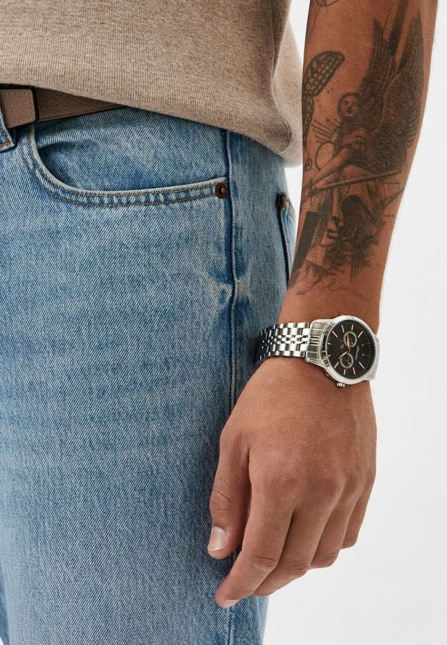 Часы Adriatica A8306.51R7QF воплощают в себе элегантность и функциональность, идеально подходящие для современных мужчин, ценящих швейцарское качество. Их черный циферблат защищенный сапфировым стекломСапфировое стеклоПрочный и надёжный материал из кристалла сапфира синтетического происхождения, характеризующийся особой твёрдостью и устойчивостью к царапинам и повреждениям., заключен в корпус из нержавеющей стали диаметром 42 мм и толщиной 9 мм. Надежный кварцевый механизм с калибром Ronda 706 обеспечивает высокую точность, а водозащита 5 ATM делает часы устойчивыми к воздействию воды. Стальной браслет с раскладной застёжкойРаскладная застёжкаТакой тип застёжки используется только на браслетах из металла. Она никогда не раскрывается полностью, происходит разделение на 2 и более частей. Раскладывающая застёжка снизит вероятность потери часов к минимуму. обеспечивает комфортное и надежное ношение. Часы оснащены тремя дополнительными циферблатами с функциями отображения числа месяца, дня недели и фазы Луны, что придает им неповторимый характер. Люминесцентное покрытиеЛюминесцентное покрытиеПозволяет считывать показания времени в темноте. Производители наносят на стрелки, часовые индексы, безель или поверхность циферблата светонакопительный состав, дающий холодное свечение. на стрелках обеспечивает отличную видимость в темноте.