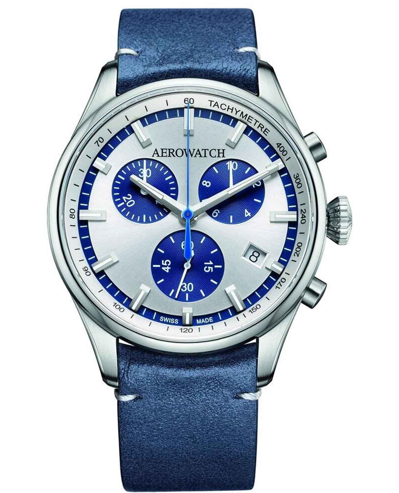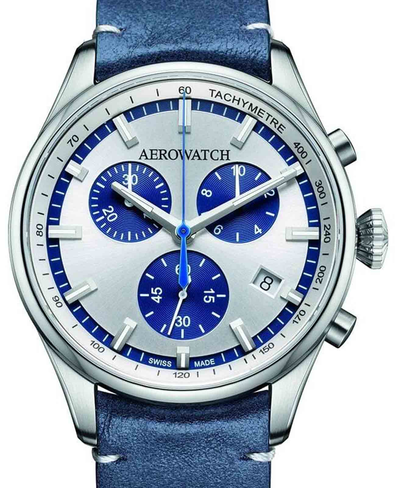 Мужские наручные часы-хронографХронографФункция позволяет измерять отрезки времени с особой точностью: часы, минуты, секунды. Верным признаком хронографа является наличие на циферблате 3 дополнительных окошек-счётчиков. Aerowatch 79990 AA05 CU  — это классический пример швейцарского часового мастерства. Модель выполнена в круглом корпусе диаметром 42 мм из нержавеющей стали, что делает их универсальным аксессуаром для повседневного и торжественного образа.