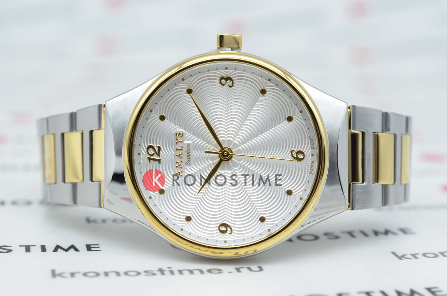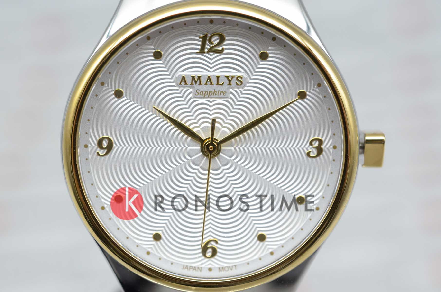 Amalys AMW-157 — женская модель с утончённым современным дизайном, в которой сочетаются минимализм и элегантность. Круглый корпус диаметром 31 мм гармонирует с браслетом с PVD-покрытиемPVDУльтратонкое покрытие наносится в технике вакуумного напыления, сочетает в себе нитрид титана особой прочности со слоем золота или оксида хрома. Несёт в себе декоративную или защитную функцию. шириной 16 мм, выполненным из нержавеющей стали и оснащённым раскладным замкомРаскладной замокДанный вариант застежки используется только на часах с металлическим браслетом. Отличительная особенность такого крепления в том, что длина браслета становится универсальной и вы можете самостоятельно отрегулировать нужный вам размер – застежка просто двигается по браслету часов., обеспечивающим удобство и надёжность при носке. БезельБезельВнешний ободок, закрепляющий стекло. В спортивных часах так называется поворотное кольцо с делениями на циферблате, выполняет роль таймера – замеряет отрезки времени на шкале. Неподвижный безель – элемент декора. Однонаправленно вращающийся безель на дайверских часах позволяет фиксировать моменты погружения и выныривания на поверхность. с PVD-покрытиемPVDУльтратонкое покрытие наносится в технике вакуумного напыления, сочетает в себе нитрид титана особой прочности со слоем золота или оксида хрома. Несёт в себе декоративную или защитную функцию.. Механизм — кварцевый, что гарантирует точный и стабильный ход. Защитную функцию выполняет сапфировое стеклоСапфировое стеклоПрочный и надёжный материал из кристалла сапфира синтетического происхождения, характеризующийся особой твёрдостью и устойчивостью к царапинам и повреждениям., стойкое к царапинам и сохраняющее прозрачность. Водозащита 5 ATM делает модель устойчивой к случайным брызгам и кратковременному контакту с водой. Лаконичный циферблат с декоративным узором и изящными стрелками подчёркивает изысканный характер часов, создавая универсальный образ, подходящий как для повседневных ситуаций, так и для особых случаев.