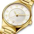 Amalys AMW-161 — женская модель с утончённым современным дизайном, в которой сочетаются минимализм и элегантность. Круглый корпус с PVD-покрытиемPVDУльтратонкое покрытие наносится в технике вакуумного напыления, сочетает в себе нитрид титана особой прочности со слоем золота или оксида хрома. Несёт в себе декоративную или защитную функцию. диаметром 31 мм гармонирует с браслетом с PVD-покрытиемPVDУльтратонкое покрытие наносится в технике вакуумного напыления, сочетает в себе нитрид титана особой прочности со слоем золота или оксида хрома. Несёт в себе декоративную или защитную функцию. шириной 16 мм, выполненным из нержавеющей стали и оснащённым раскладным замкомРаскладной замокДанный вариант застежки используется только на часах с металлическим браслетом. Отличительная особенность такого крепления в том, что длина браслета становится универсальной и вы можете самостоятельно отрегулировать нужный вам размер – застежка просто двигается по браслету часов., обеспечивающим удобство и надёжность при носке. Механизм — кварцевый, что гарантирует точный и стабильный ход. Защитную функцию выполняет сапфировое стеклоСапфировое стеклоПрочный и надёжный материал из кристалла сапфира синтетического происхождения, характеризующийся особой твёрдостью и устойчивостью к царапинам и повреждениям., стойкое к царапинам и сохраняющее прозрачность. Водозащита 5 ATM делает модель устойчивой к случайным брызгам и кратковременному контакту с водой. Лаконичный циферблат с декоративным узором и изящными стрелками подчёркивает изысканный характер часов, создавая универсальный образ, подходящий как для повседневных ситуаций, так и для особых случаев.