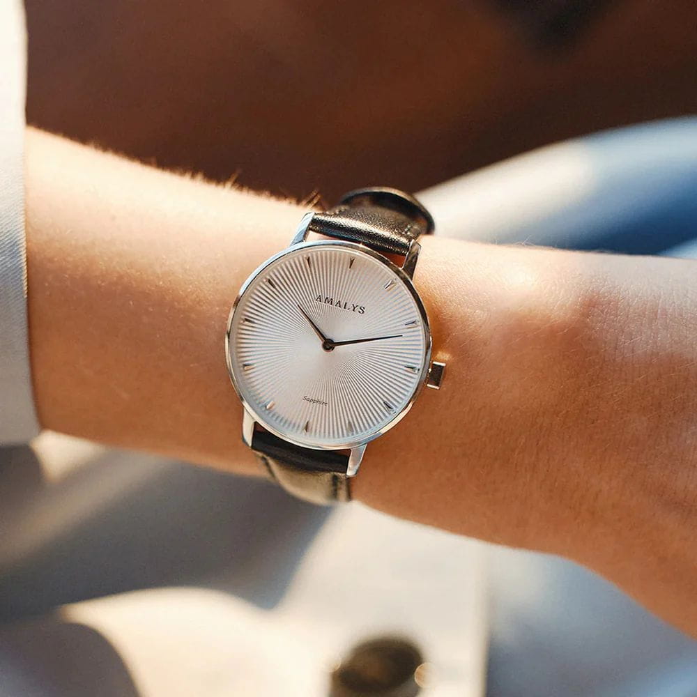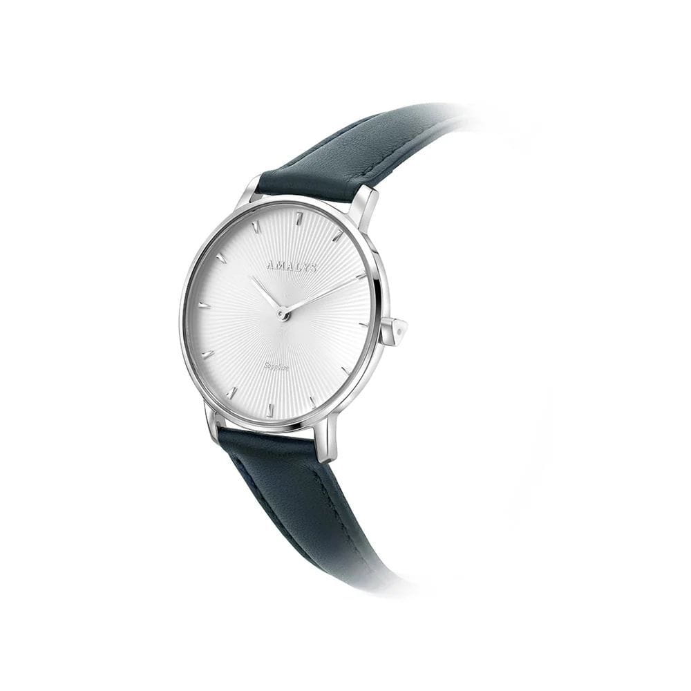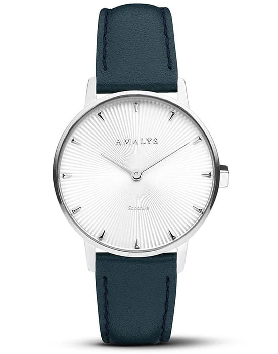 Amalys AMW-175 — женская модель с утончённым классическим дизайном, в которой сочетаются элегантность и практичность. Круглый корпус диаметром 33 мм выполнен из нержавеющей стали, гармонирующим с ремешком шириной 16 мм в том же исполнении. Защитную функцию выполняет сапфировое стеклоСапфировое стеклоПрочный и надёжный материал из кристалла сапфира синтетического происхождения, характеризующийся особой твёрдостью и устойчивостью к царапинам и повреждениям., стойкое к царапинам и сохраняющее прозрачность. Механизм — кварцевый, обеспечивающий точность и стабильность хода. Кожаный ремешок на стандартной застежке, который сочетает надёжность фиксации и удобство повседневного использования. Водозащита 3 ATM защищает часы от случайных брызг и дождя. Циферблат с римскими индексами и изящными стрелками подчёркивает классическую эстетику модели, делая её уместной как в повседневных образах, так и в торжественной обстановке.