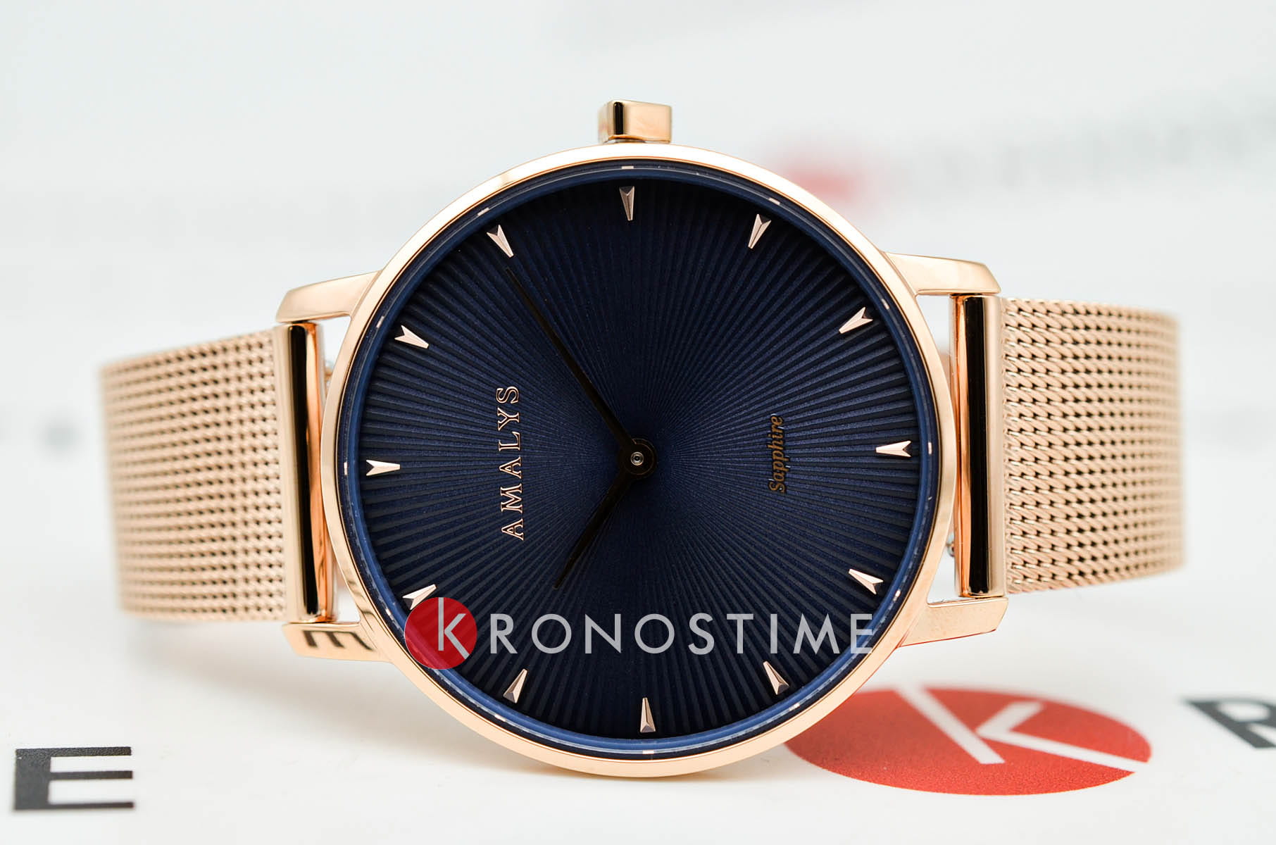 Amalys AMW-192 — женский набор, включающий часы и браслет, выполненный в едином элегантном стиле. Круглый корпус диаметром 33 мм изготовлен из нержавеющей стали с PVDPVDУльтратонкое покрытие наносится в технике вакуумного напыления, сочетает в себе нитрид титана особой прочности со слоем золота или оксида хрома. Несёт в себе декоративную или защитную функцию.-покрытием тёплого золотистого оттенка, что подчёркивает изысканный характер модели. Защитную функцию выполняет сапфировое стеклоСапфировое стеклоПрочный и надёжный материал из кристалла сапфира синтетического происхождения, характеризующийся особой твёрдостью и устойчивостью к царапинам и повреждениям., стойкое к царапинам и сохраняющее прозрачность. Механизм — кварцевый, обеспечивающий точность хода и удобство в использовании. Водозащита 3 ATM защищает от случайных брызг и дождя. Циферблат оформлен в минималистичном стиле с тонкими метками и изящными стрелками, подчёркивающими женственный образ. Стальной браслет миланского плетения с PVDPVDУльтратонкое покрытие наносится в технике вакуумного напыления, сочетает в себе нитрид титана особой прочности со слоем золота или оксида хрома. Несёт в себе декоративную или защитную функцию.-покрытием на раскладном замкеРаскладной замокДанный вариант застежки используется только на часах с металлическим браслетом. Отличительная особенность такого крепления в том, что длина браслета становится универсальной и вы можете самостоятельно отрегулировать нужный вам размер – застежка просто двигается по браслету часов. мягко облегает запястье и гармонично сочетается с корпусом. Дополняющий набор браслет усиливает впечатление цельности и придаёт образу завершённость.