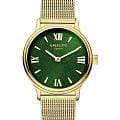 Amalys AMW-201 — женская модель с утончённым классическим дизайном, в которой сочетаются элегантность и практичность. Круглый корпус диаметром 28 мм выполнен из нержавеющей стали с PVD-покрытиемPVDУльтратонкое покрытие наносится в технике вакуумного напыления, сочетает в себе нитрид титана особой прочности со слоем золота или оксида хрома. Несёт в себе декоративную или защитную функцию., гармонирующим с браслетом шириной 14 мм в том же исполнении. Защитную функцию выполняет сапфировое стеклоСапфировое стеклоПрочный и надёжный материал из кристалла сапфира синтетического происхождения, характеризующийся особой твёрдостью и устойчивостью к царапинам и повреждениям., стойкое к царапинам и сохраняющее прозрачность. Механизм — кварцевый, обеспечивающий точность и стабильность хода. Браслет миланского плетения с PVD-покрытиемPVDУльтратонкое покрытие наносится в технике вакуумного напыления, сочетает в себе нитрид титана особой прочности со слоем золота или оксида хрома. Несёт в себе декоративную или защитную функцию. снабжён раскладным замкомРаскладной замокДанный вариант застежки используется только на часах с металлическим браслетом. Отличительная особенность такого крепления в том, что длина браслета становится универсальной и вы можете самостоятельно отрегулировать нужный вам размер – застежка просто двигается по браслету часов., который сочетает надёжность фиксации и удобство повседневного использования. Водозащита 5 ATM защищает часы от случайных брызг и дождя. Циферблат с римскими индексами и изящными стрелками подчёркивает классическую эстетику модели, делая её уместной как в повседневных образах, так и в торжественной обстановке.