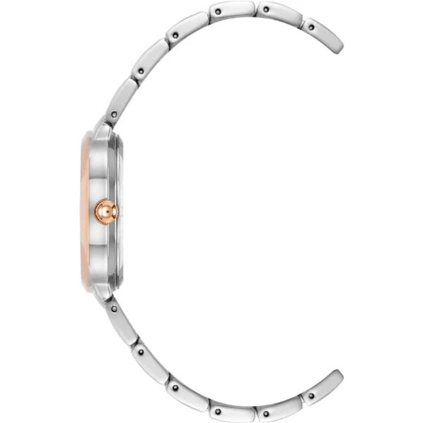 Женские кварцевые часы Anne Klein 5021SVRT представляют собой элегантный аксессуар с овальным корпусом 26 мм из латуни с PVDPVDУльтратонкое покрытие наносится в технике вакуумного напыления, сочетает в себе нитрид титана особой прочности со слоем золота или оксида хрома. Несёт в себе декоративную или защитную функцию.-покрытием в серебристом оттенке. Модель оснащена минималистичным серебристым циферблатом с римскими цифрами и позолоченными стрелками, кварцевым механизмом японского производства с точностью хода ±20 секунд в месяц. Защитное минеральное стеклоМинеральное стеклоМинеральное стекло представляет собой искусственно выращенный минерал кварца. Такое стекло отличается особой устойчивостью к повреждениям и царапинам. Уступает по некоторым качествам сапфировому стеклу. устойчиво к царапинам, а водонепроницаемость 30 метров (3 атм) защищает от брызг и дождя. Металлический браслет из нержавеющей стали с PVDPVDУльтратонкое покрытие наносится в технике вакуумного напыления, сочетает в себе нитрид титана особой прочности со слоем золота или оксида хрома. Несёт в себе декоративную или защитную функцию.-покрытием выполнен в двухцветном дизайне, сочетающем серебристый и розово-золотистый оттенки. Идеальный выбор для женщин, ценящих сочетание классической элегантности и современного дизайна в повседневных аксессуарах.