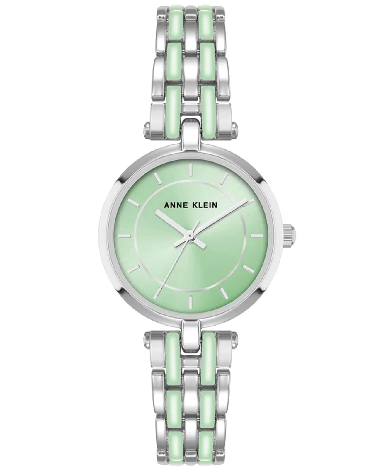 Женские американские часы с минеральным стекломМинеральное стеклоМинеральное стекло представляет собой искусственно выращенный минерал кварца. Такое стекло отличается особой устойчивостью к повреждениям и царапинам. Уступает по некоторым качествам сапфировому стеклу. Anne Klein Metals 3919SGSV, кварцевый механизм с высокой точностью. Класс водозащиты: 30 метров, позволит защитить корпус от случайных брызг или капель дождя. Корпус часов изготовлен из стали. Стальной браслет на ювелирной застёжке и эмалевыми вставками.