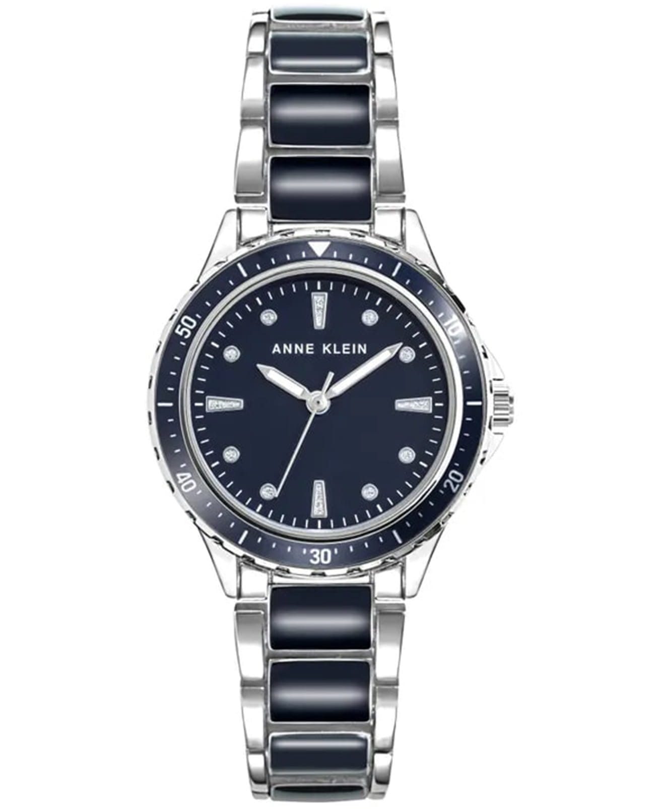 Женские американские наручные часы Anne Klein Metals 3951NVSV, кварцевый механизм с высокой точностью. Класс водозащиты: 30 метров, позволит защитить корпус от случайных брызг или капель дождя. Минеральное стеклоМинеральное стеклоМинеральное стекло представляет собой искусственно выращенный минерал кварца. Такое стекло отличается особой устойчивостью к повреждениям и царапинам. Уступает по некоторым качествам сапфировому стеклу. устойчивое к мелким механическим повреждениям. Корпус часов изготовлен из стали. Стальной браслет на раскладной застёжкеРаскладная застёжкаТакой тип застёжки используется только на браслетах из металла. Она никогда не раскрывается полностью, происходит разделение на 2 и более частей. Раскладывающая застёжка снизит вероятность потери часов к минимуму. и вставками эмали. БезельБезельВнешний ободок, закрепляющий стекло. В спортивных часах так называется поворотное кольцо с делениями на циферблате, выполняет роль таймера – замеряет отрезки времени на шкале. Неподвижный безель – элемент декора. Однонаправленно вращающийся безель на дайверских часах позволяет фиксировать моменты погружения и выныривания на поверхность. с PVD-покрытиемPVDУльтратонкое покрытие наносится в технике вакуумного напыления, сочетает в себе нитрид титана особой прочности со слоем золота или оксида хрома. Несёт в себе декоративную или защитную функцию..