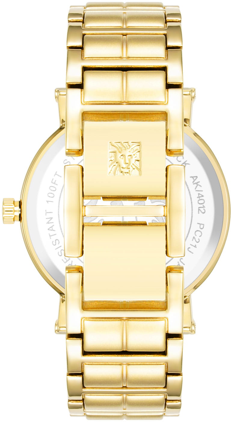 Женские американские наручные часы Anne Klein Metals 4012WTGB, кварцевый механизм с высокой точностью. Класс водозащиты: 30 метров, позволит защитить корпус от случайных брызг или капель дождя. Минеральное стеклоМинеральное стеклоМинеральное стекло представляет собой искусственно выращенный минерал кварца. Такое стекло отличается особой устойчивостью к повреждениям и царапинам. Уступает по некоторым качествам сапфировому стеклу. устойчивое к мелким механическим повреждениям. Корпус часов изготовлен из стали с IP-покрытиемIP-покрытиеМетод ионного напыления. Демонстрирует повышенную устойчивость к истиранию, окислению и химическим веществам. Под воздействием высокого давления и температуры около 1500°C молекулы металла надёжно соединяются с частицами корпуса часов.. Стальной браслет с IP-покрытиемIP-покрытиеМетод ионного напыления. Демонстрирует повышенную устойчивость к истиранию, окислению и химическим веществам. Под воздействием высокого давления и температуры около 1500°C молекулы металла надёжно соединяются с частицами корпуса часов. и ювелирной застежкой.