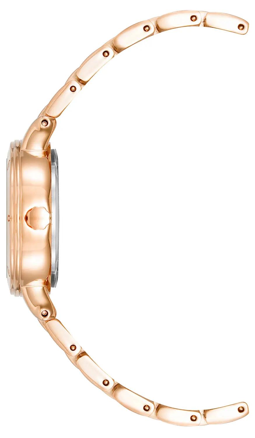 Женские американские часы с минеральным стекломМинеральное стеклоМинеральное стекло представляет собой искусственно выращенный минерал кварца. Такое стекло отличается особой устойчивостью к повреждениям и царапинам. Уступает по некоторым качествам сапфировому стеклу. Anne Klein Metals 4014WTRG, кварцевый механизм с высокой точностью. Класс водозащиты:30 метров, позволит защитить корпус от случайных брызг или капель дождя. Корпус часов изготовлен из стали с IP-покрытиемIP-покрытиеМетод ионного напыления. Демонстрирует повышенную устойчивость к истиранию, окислению и химическим веществам. Под воздействием высокого давления и температуры около 1500°C молекулы металла надёжно соединяются с частицами корпуса часов.. Стальной браслет на ювелирной застёжке с IP-покрытиемIP-покрытиеМетод ионного напыления. Демонстрирует повышенную устойчивость к истиранию, окислению и химическим веществам. Под воздействием высокого давления и температуры около 1500°C молекулы металла надёжно соединяются с частицами корпуса часов.. Римская индикация времени.