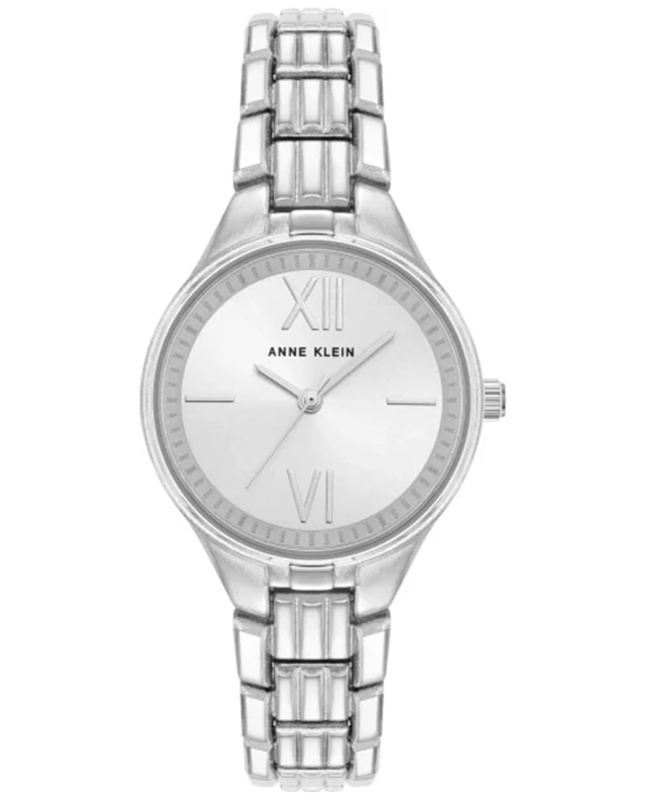 Женские кварцевые часы Anne Klein Metals 44061SVSV представляют собой элегантный аксессуар с круглым корпусом 28 мм из нержавеющей стали с PVDPVDУльтратонкое покрытие наносится в технике вакуумного напыления, сочетает в себе нитрид титана особой прочности со слоем золота или оксида хрома. Несёт в себе декоративную или защитную функцию.-покрытием. Модель оснащена кварцевым механизмом высокой точности (±20 сек/мес) и защищена минеральным стекломМинеральное стеклоМинеральное стекло представляет собой искусственно выращенный минерал кварца. Такое стекло отличается особой устойчивостью к повреждениям и царапинам. Уступает по некоторым качествам сапфировому стеклу., устойчивым к царапинам. Водонепроницаемость 30 метров (WR 30) обеспечивает защиту от брызг и дождя. Металлический браслет из нержавеющей стали с PVDPVDУльтратонкое покрытие наносится в технике вакуумного напыления, сочетает в себе нитрид титана особой прочности со слоем золота или оксида хрома. Несёт в себе декоративную или защитную функцию.-покрытием имеют классический дизайн и гармонично сочетается с корпусом, создавая целостный образ. Серебристый циферблат с римскими цифрами подчеркивает элегантность модели.