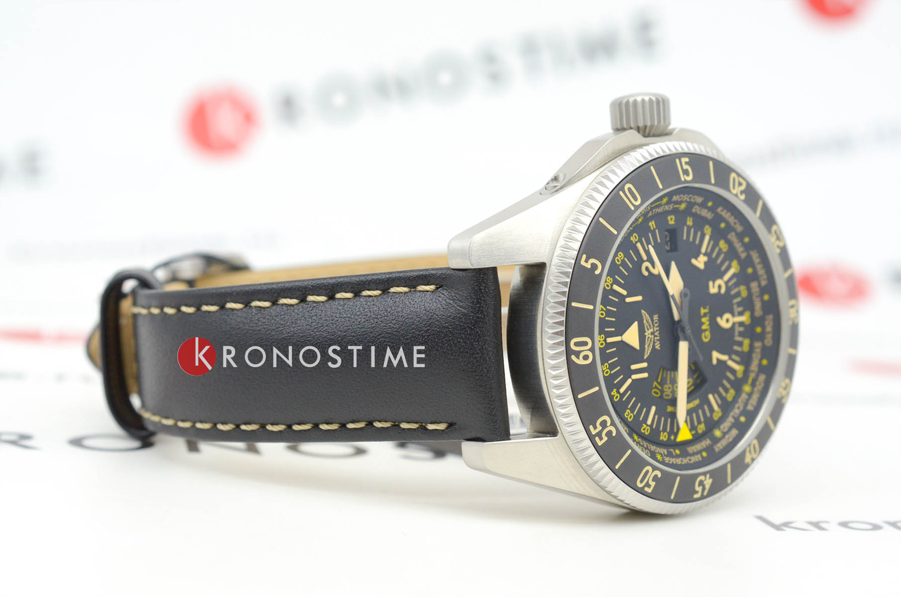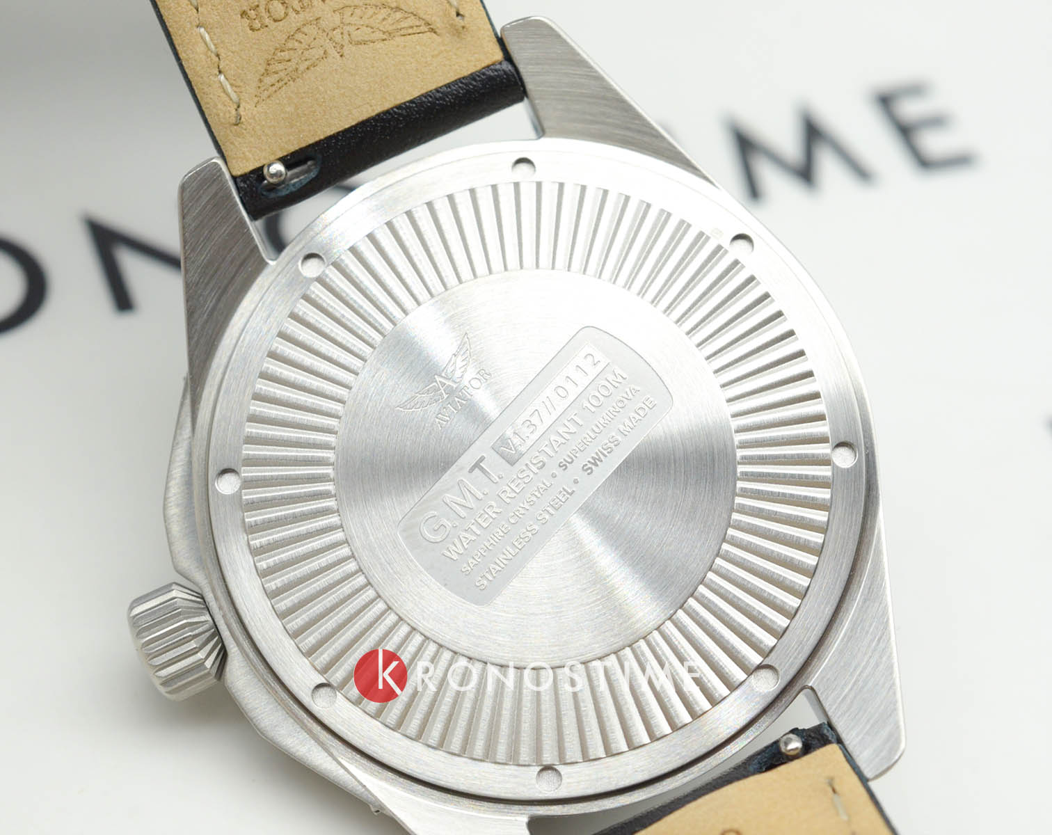 Aviator Airacobra V.1.37.0.303.4 “Airacobra GMT” — сбалансированный швейцарский пилотский GMT, сочетающий техническую строгость с удобными функциями для путешествий. Корпус диаметром 43 мм из нержавеющей стали обеспечивает уверенное ощущение надёжности, а герметичность до 100 м защищает при любой погоде .