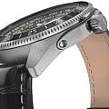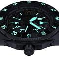 Циферблат отличается детальной функциональностью: в центре — крупные арабские цифры и стрелки, покрытые люминесцентным покрытиемЛюминесцентное покрытиеПозволяет считывать показания времени в темноте. Производители наносят на стрелки, часовые индексы, безель или поверхность циферблата светонакопительный состав, дающий холодное свечение., обеспечивающими мгновенное считывание времени даже в темноте. На «3 часах» — окошко даты, а индикатор второго часового пояса (GMT) удобно расположен на «9 часах». С внешней стороны — вращающийся безельБезельВнешний ободок, закрепляющий стекло. В спортивных часах так называется поворотное кольцо с делениями на циферблате, выполняет роль таймера – замеряет отрезки времени на шкале. Неподвижный безель – элемент декора. Однонаправленно вращающийся безель на дайверских часах позволяет фиксировать моменты погружения и выныривания на поверхность. с PVD-покрытиемPVDУльтратонкое покрытие наносится в технике вакуумного напыления, сочетает в себе нитрид титана особой прочности со слоем золота или оксида хрома. Несёт в себе декоративную или защитную функцию. с насечкой и градусной шкалой для секунд — идеален для расчёта времени пути или времени прибытия .