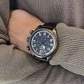 Aviator Airacobra P45 Chrono V.2.25.8.172.4 — швейцарские часы в духе пилотских инструментов, объединяющий точность, удобство и лаконичный дизайн. Диаметр корпуса — 45 мм, выполнен из нержавеющей стали 316L с PVD-покрытиемPVDУльтратонкое покрытие наносится в технике вакуумного напыления, сочетает в себе нитрид титана особой прочности со слоем золота или оксида хрома. Несёт в себе декоративную или защитную функцию., что подчёркивает техническую надёжность в образе часов. Циферблат оформлен в классическом aviator-стиле: крупные арабские цифры, широкие стрелки и чёткое деление минут позволяют считывать время мгновенно. Стрелки и метки покрыты люминесцентным покрытиемЛюминесцентное покрытиеПозволяет считывать показания времени в темноте. Производители наносят на стрелки, часовые индексы, безель или поверхность циферблата светонакопительный состав, дающий холодное свечение. Superluminova для отличной читаемости при слабом освещении. Циферблат защищён стойким сапфировым стекломСапфировое стеклоПрочный и надёжный материал из кристалла сапфира синтетического происхождения, характеризующийся особой твёрдостью и устойчивостью к царапинам и повреждениям. с антибликовым покрытиемАнтибликовое покрытиеСлой оксида металла в 0,13-0,3 микрон, благодаря которому стекло часов не бликует и не отражает свет. Антибликовое покрытие уменьшает отражение света в 10 раз, обеспечивая отличную читаемость показателей циферблата.. У модели присутствуют дата и точный откидной механизм завинчивающейся заводной головки и задней крышки, обеспечивающий надёжную водозащиту до 100 м и защиту от ударов. Внутри установлен швейцарский кварцевый механизм, который обеспечивает функции хронографаХронографФункция позволяет измерять отрезки времени с особой точностью: часы, минуты, секунды. Верным признаком хронографа является наличие на циферблате 3 дополнительных окошек-счётчиков.. Функции добавить (ADD) и разделить (SPLIT). Кожаный ремень со стандартной застежкой обеспечивает удобство и надёжную фиксацию. Эти изысканные часы так же обладают функциями тахиметраТахиметрРазмеченная шкала, располагается на ободке или безеле часов. Тахиметр позволяет рассчитать скорость на определённом участке пути, расстояние измеряется в километрах или милях., секундомераСекундомерСекундоме́р — прибор, способный измерять интервалы времени с точностью до долей секунды. и телеметра. Airacobra — это практичный и стильный инструмент для путешествий и активной повседневности, объединяющий авиационную эстетику, точный механизм и удобство.