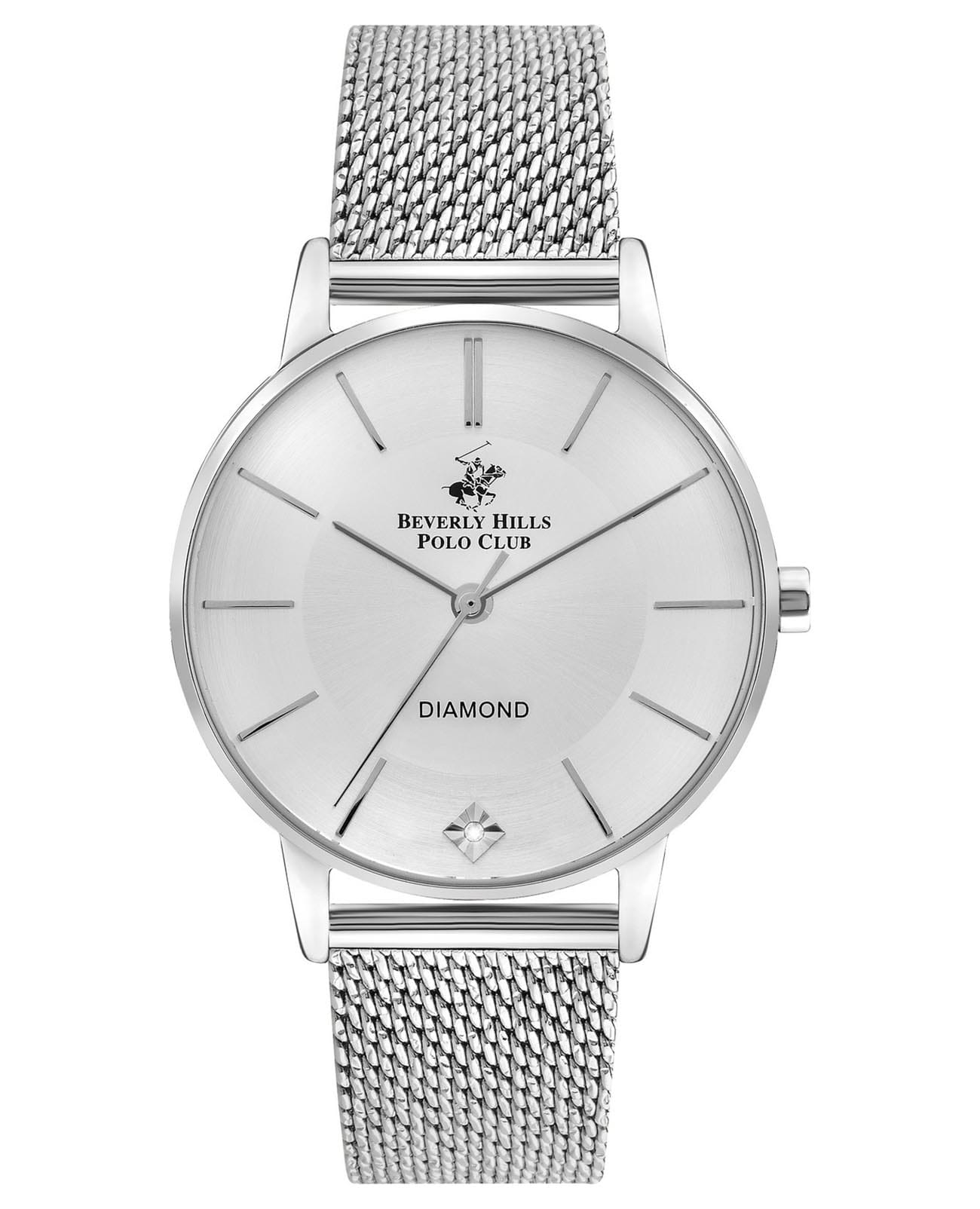 Американские женские часы с минеральным стекломМинеральное стеклоМинеральное стекло представляет собой искусственно выращенный минерал кварца. Такое стекло отличается особой устойчивостью к повреждениям и царапинам. Уступает по некоторым качествам сапфировому стеклу. Beverly Hills Polo Club BP3394C.330, кварцевый механизм с высокой точностью. Корпус и браслет часов изготовлены из нержавеющей стали. Циферблат инкрустирован бриллиантом. Класс водозащиты: 50 метров, позволит защитить корпус от случайных брызг или капель дождя. Стальной браслет миланского плетения на раскладной застёжкеРаскладная застёжкаТакой тип застёжки используется только на браслетах из металла. Она никогда не раскрывается полностью, происходит разделение на 2 и более частей. Раскладывающая застёжка снизит вероятность потери часов к минимуму..