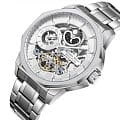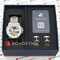 Мужские наручные часы-скелетоны Beverly Hills Polo Club BP3269XS.330 сочетают в себе стиль и надежную функциональность . Модель обладает круглым корпусом диаметром 48,5 мм, изготовленным из нержавеющей стали, что обеспечивает высокую устойчивость к внешним воздействиям . Браслет также выполнен из нержавеющей стали, гарантируя комфортное ношение. Для защиты используется минеральное стеклоМинеральное стеклоМинеральное стекло представляет собой искусственно выращенный минерал кварца. Такое стекло отличается особой устойчивостью к повреждениям и царапинам. Уступает по некоторым качествам сапфировому стеклу., которое обеспечивает прочную защиту от царапин . Часы оснащены автоматическим механизмом с автоподзаводом, что делает их удобными для повседневного использования . Водонепроницаемость модели достигает 100 метров (WR 100), что позволяет использовать их во время плавания и других водных видов спорта . Дополнительно часы поддерживают функцию второго часового поясаВторой часовой поясФункция, позволяющая отображать время двух часовых поясов одновременно., что особенно полезно для путешественников. В комплекте поставляются стильные металлические запонки, выполненные в едином дизайне с часами. Их лаконичный и элегантный вид подчёркивает внимание к деталям и идеально дополняет деловой или торжественный образ.