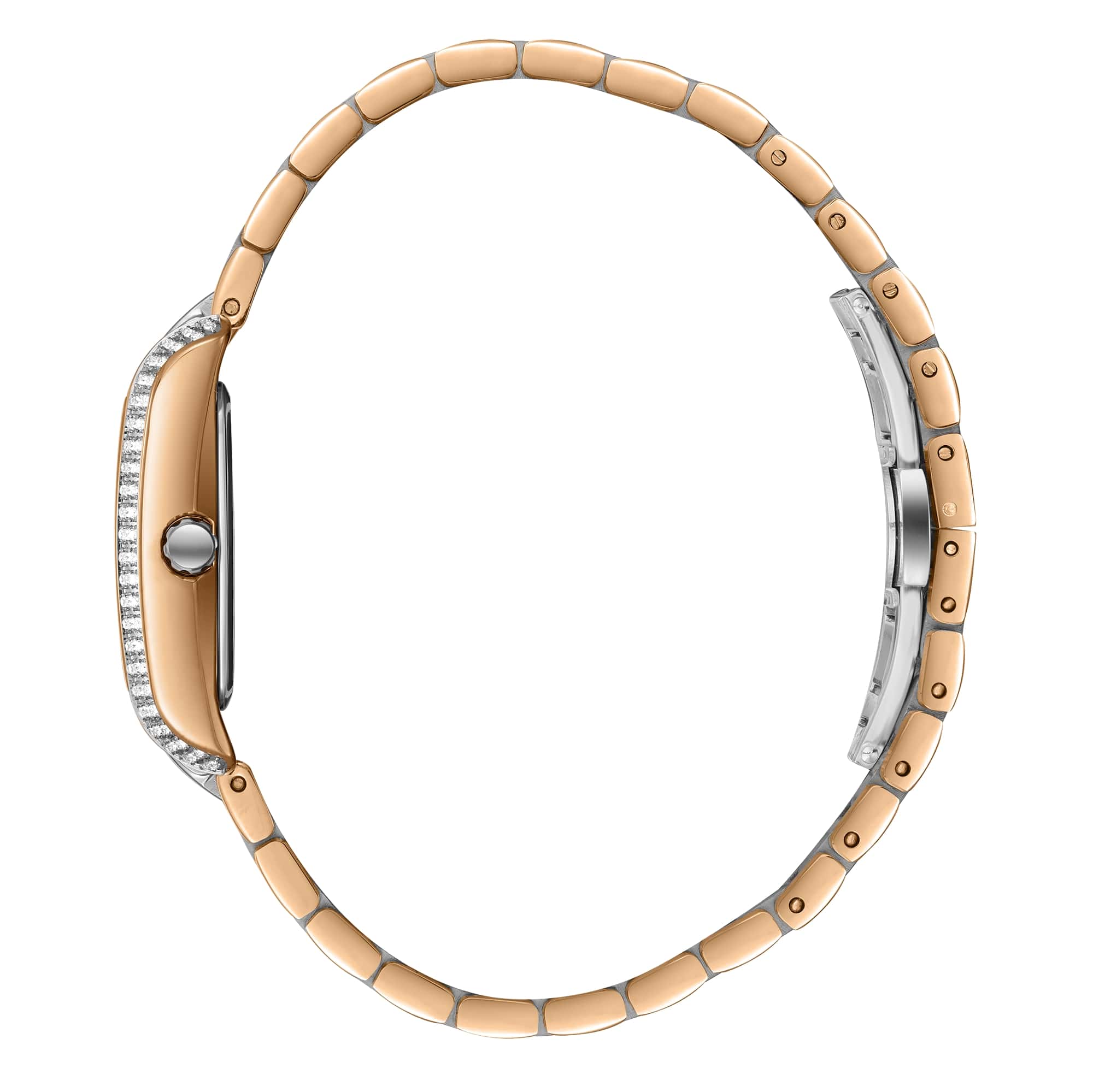 Механизм часов кварцевый, питание от батарейки, что обеспечивает точность хода и минимальное обслуживание. Циферблат защищен минеральным стекломМинеральное стеклоМинеральное стекло представляет собой искусственно выращенный минерал кварца. Такое стекло отличается особой устойчивостью к повреждениям и царапинам. Уступает по некоторым качествам сапфировому стеклу. с сапфировым покрытием, которое устойчиво к появлению царапин и сохраняет чистоту взгляда на протяжении длительного времени. Стальной браслет с частичным IP-покрытиемIP-покрытиеМетод ионного напыления. Демонстрирует повышенную устойчивость к истиранию, окислению и химическим веществам. Под воздействием высокого давления и температуры около 1500°C молекулы металла надёжно соединяются с частицами корпуса часов. на застёжке-бабочке с кнопкамиЗастёжка "бабочка"Такой вид застёжки дополняется предохранителями, помогающими избежать случайного раскрытия браслета. Обладают изящным исполнением. . Часы обладают водозащитой до 30 метров, позволит защитить корпус от случайных брызг или капель дождя. Цирконы придают часам неповторимый шарм и изысканность.