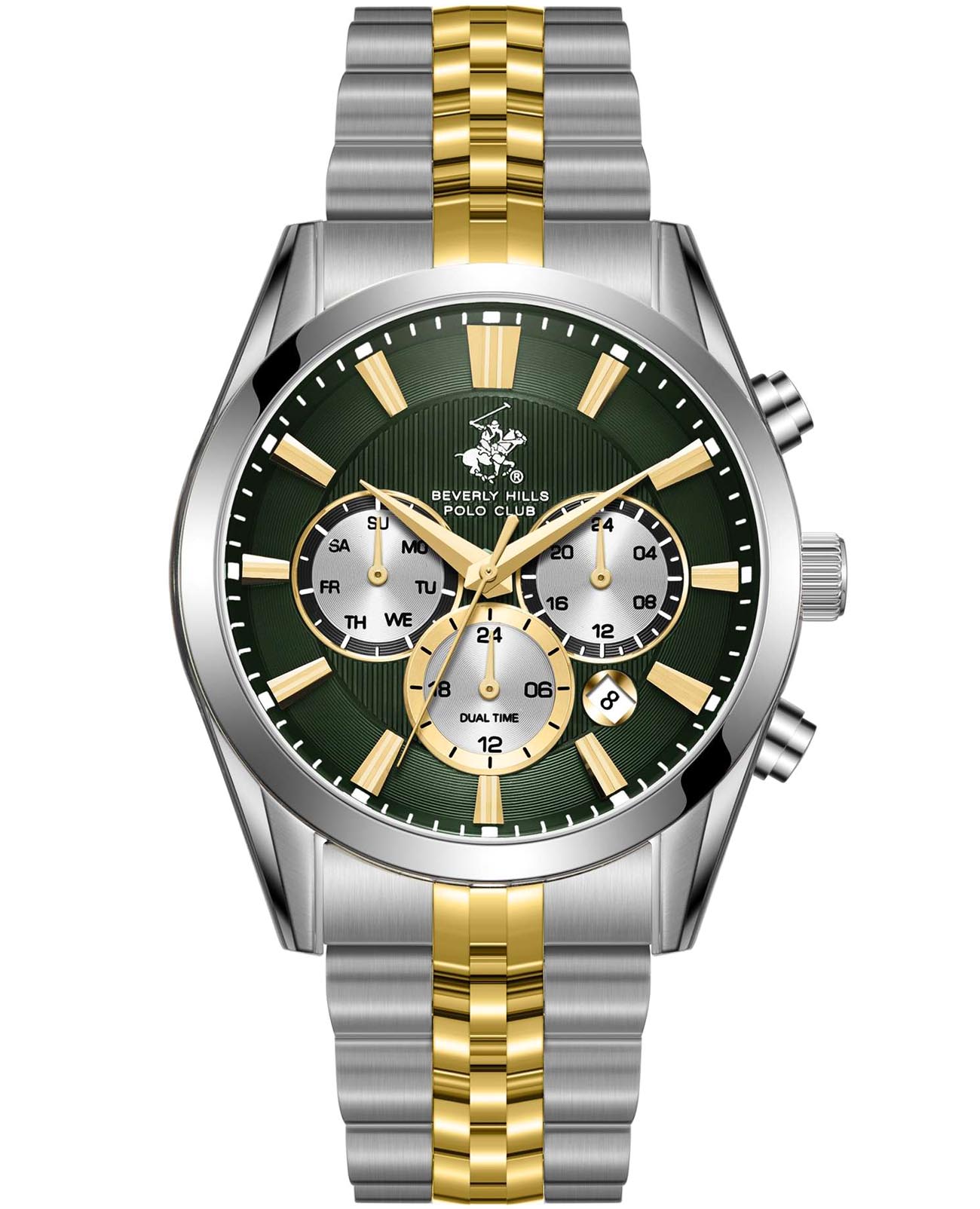 Американские мужские часы Beverly Hills Polo Club BP3782X.270 - это стильный мужской аксессуар, который сочетает элегантный дизайн и практичность. Корпус выполнен из нержавеющей стали серебристого цвета, диаметром 42 мм, что обеспечивает долговечность и утончённый внешний вид. Надежное минеральное стеклоМинеральное стеклоМинеральное стекло представляет собой искусственно выращенный минерал кварца. Такое стекло отличается особой устойчивостью к повреждениям и царапинам. Уступает по некоторым качествам сапфировому стеклу. с сапфировым покрытием защищает циферблат от царапин и обеспечивает долговечность. Модель оснащена кварцевым механизмом, обеспечивающим высокую точность хода. Стальной браслет на застёжке-бабочке с кнопкамиЗастёжка "бабочка"Такой вид застёжки дополняется предохранителями, помогающими избежать случайного раскрытия браслета. Обладают изящным исполнением. с частичным IP-покрытиемIP-покрытиеМетод ионного напыления. Демонстрирует повышенную устойчивость к истиранию, окислению и химическим веществам. Под воздействием высокого давления и температуры около 1500°C молекулы металла надёжно соединяются с частицами корпуса часов. золотого цвета обеспечивает комфортное ношение. Функциональность модели расширена за счёт индикации дня даты, дня недели и дополнительным 24-х часовым индикатором. Водозащита 50 метров позволит защитить корпус от случайных брызг или капель дождя. Эта модель – отличный выбор для тех, кто ищет сочетание стиля, качества и функциональности. Часы станут не только полезным аксессуаром, но и выразительным элементом вашего имиджа.