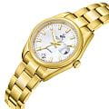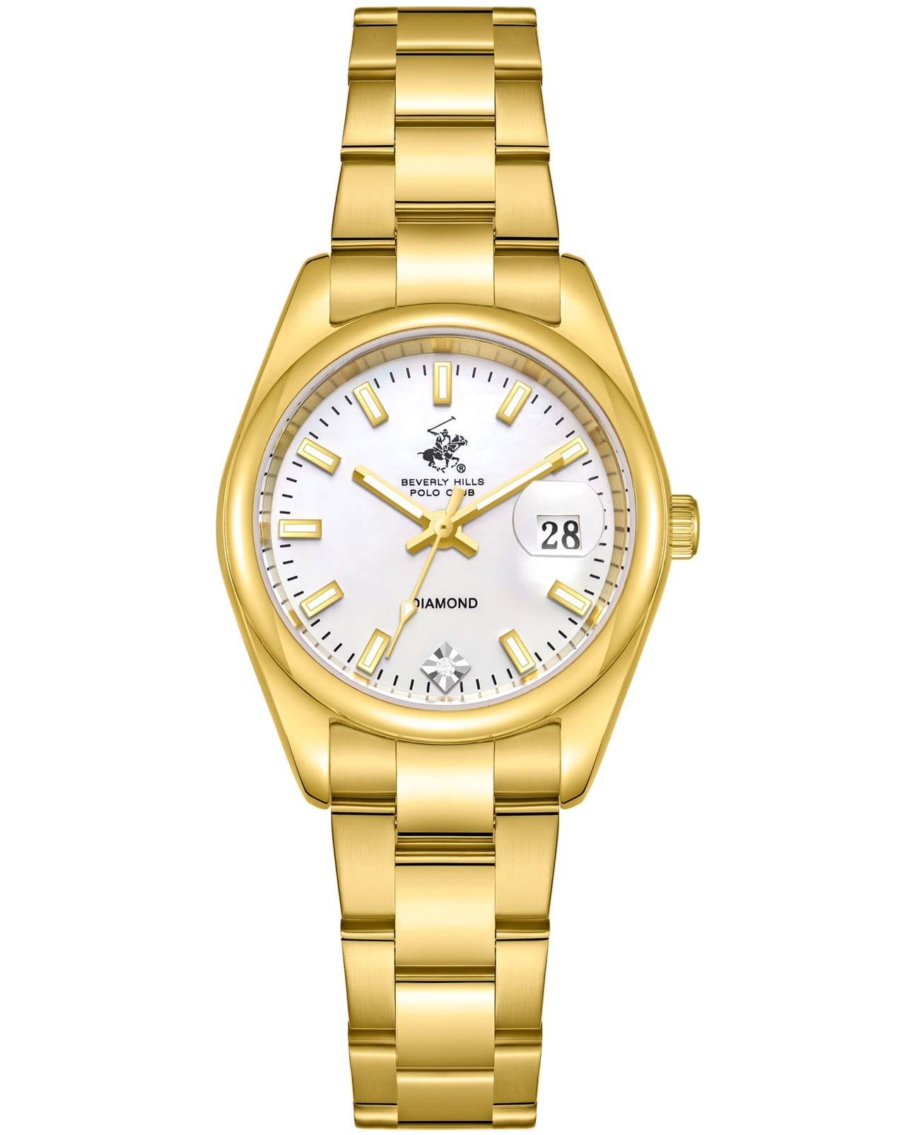 Американские женские часы Beverly Hills Polo Club BP3794X.120 - это стильный женский аксессуар, который сочетает элегантный дизайн и практичность. Корпус выполнен из нержавеющей стали с IP-покрытиемIP-покрытиеМетод ионного напыления. Демонстрирует повышенную устойчивость к истиранию, окислению и химическим веществам. Под воздействием высокого давления и температуры около 1500°C молекулы металла надёжно соединяются с частицами корпуса часов. золотистого цвета, диаметром 34,5 мм, что обеспечивает долговечность и утончённый внешний вид. Надежное минеральное стеклоМинеральное стеклоМинеральное стекло представляет собой искусственно выращенный минерал кварца. Такое стекло отличается особой устойчивостью к повреждениям и царапинам. Уступает по некоторым качествам сапфировому стеклу. с сапфировым покрытием защищает циферблат от царапин и обеспечивает долговечность. Метки в виде штрихов, в позиции "6 часов" инкрустирован синтетический бриллиант. Модель оснащена кварцевым механизмом, обеспечивающим высокую точность хода. Стальной браслет на застёжке-бабочке с кнопкамиЗастёжка "бабочка"Такой вид застёжки дополняется предохранителями, помогающими избежать случайного раскрытия браслета. Обладают изящным исполнением. обеспечивает комфортное ношение. Стрелки и метки оснащены люминесцентным покрытиемЛюминесцентное покрытиеПозволяет считывать показания времени в темноте. Производители наносят на стрелки, часовые индексы, безель или поверхность циферблата светонакопительный состав, дающий холодное свечение., обеспечивающим отличную видимость даже при слабом освещении. Окошко даты находится в положении 3 часа. Водозащита 30 метров позволит защитить корпус от случайных брызг или капель дождя. Эта модель – отличный выбор для тех, кто ищет сочетание стиля, качества и функциональности. Часы станут не только полезным аксессуаром, но и выразительным элементом вашего имиджа.