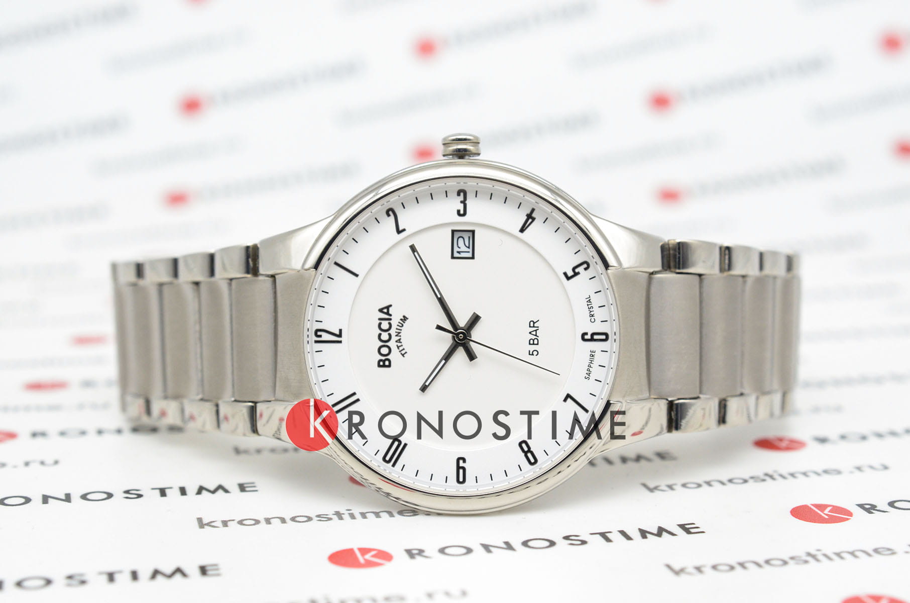 Мужские немецкие титановые часы Boccia Titanium 3629-02, кварцевый механизм с высокой точностью. Сапфировое стеклоСапфировое стеклоПрочный и надёжный материал из кристалла сапфира синтетического происхождения, характеризующийся особой твёрдостью и устойчивостью к царапинам и повреждениям. устойчивое к появлению царапин, обладающее высокой прозрачностью. Корпус изготовлен из титана. Стрелки с люминесцентным покрытиемЛюминесцентное покрытиеПозволяет считывать показания времени в темноте. Производители наносят на стрелки, часовые индексы, безель или поверхность циферблата светонакопительный состав, дающий холодное свечение.. Окошко даты в положении 3 часов. Класс водозащиты: 50 метров, позволит защитить корпус от случайных брызг или капель дождя. Браслет из титана на раскладной застёжкеРаскладная застёжкаТакой тип застёжки используется только на браслетах из металла. Она никогда не раскрывается полностью, происходит разделение на 2 и более частей. Раскладывающая застёжка снизит вероятность потери часов к минимуму..