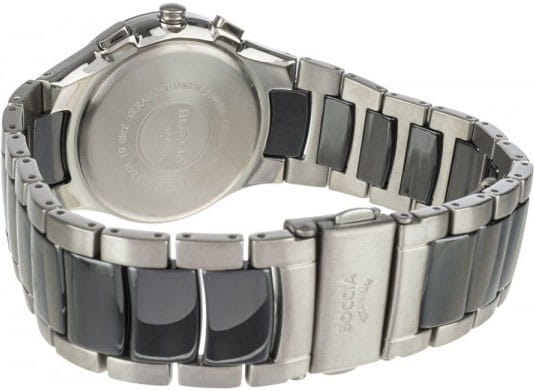 Мужские немецкие титановые часы-хронографХронографФункция позволяет измерять отрезки времени с особой точностью: часы, минуты, секунды. Верным признаком хронографа является наличие на циферблате 3 дополнительных окошек-счётчиков. Boccia Titanium 3748-01, кварцевый механизм с высокой точностью. Сапфировое стеклоСапфировое стеклоПрочный и надёжный материал из кристалла сапфира синтетического происхождения, характеризующийся особой твёрдостью и устойчивостью к царапинам и повреждениям. устойчивое к мелким механическим повреждениям. Корпус изготовлен из титана. На циферблате расположены три дополнительных индикатора и окошко даты. Класс водозащиты: 50 метров, позволит защитить корпус от случайных брызг или капель дождя. Браслет из титана с керамическими вставками на раскладной застёжкеРаскладная застёжкаТакой тип застёжки используется только на браслетах из металла. Она никогда не раскрывается полностью, происходит разделение на 2 и более частей. Раскладывающая застёжка снизит вероятность потери часов к минимуму..