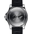 Класс водозащиты: 1000 метров, позволит плавать, нырять и заниматься другими водными видами спорта. Корпус часов изготовлен из нержавеющей стали, серебристого цвета. Чёрный каучуковый ремешок с кнопочной застежкой.