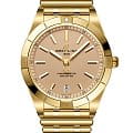 Женские швейцарские часы Breitling Chronomat Automatic 36 Victoria Beckham K103801A1A1K1 с надёжным автоматическим механизмом, выпущенные лимитированной серией всего из 1500 экземпляров в сотрудничестве с модным домом Victoria Beckham. Сапфировое стеклоСапфировое стеклоПрочный и надёжный материал из кристалла сапфира синтетического происхождения, характеризующийся особой твёрдостью и устойчивостью к царапинам и повреждениям. устойчивое к мелким механическим повреждениям. Корпус и браслет часов изготовлены из желтого 18-каратного золота18-каратное золотоОбозначение по каратной системе пробирования, оно показывает, сколько драгоценного металла содержится в изделии. 18 карат - в составе 75% чистого золота, соответствует 750 пробе.