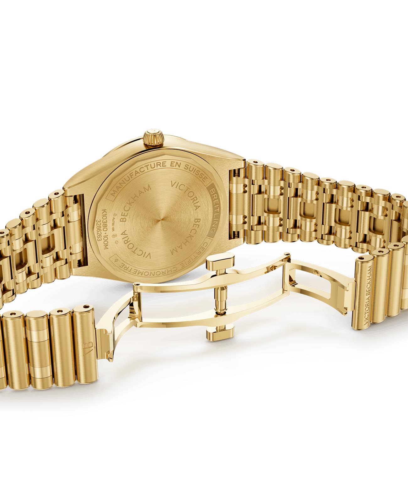 Женские швейцарские часы Breitling Chronomat Automatic 36 Victoria Beckham K103801A1L1K1 с надёжным автоматическим механизмом, выпущенные лимитированной серией всего из 1500 экземпляров в сотрудничестве с модным домом Victoria Beckham. Сапфировое стеклоСапфировое стеклоПрочный и надёжный материал из кристалла сапфира синтетического происхождения, характеризующийся особой твёрдостью и устойчивостью к царапинам и повреждениям. устойчивое к мелким механическим повреждениям. Корпус и браслет часов изготовлены из желтого 18-каратного золота18-каратное золотоОбозначение по каратной системе пробирования, оно показывает, сколько драгоценного металла содержится в изделии. 18 карат - в составе 75% чистого золота, соответствует 750 пробе.