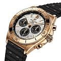 Универсальный хронометр Breitling Chronomat B01 42 Erling Haaland RB01347A1F1S1 выпущен ограниченным тиражом в 250 экземпляров в сотрудничестве с самим футболистом. Циферблат с черными дополнительными циферблатами вырезан из метеорита Муониалюста возрастом 4,5 миллиарда лет. На противовесе секундной стрелки хронографа выгравированы инициалы Эрлинга. Часы-хронографХронографФункция позволяет измерять отрезки времени с особой точностью: часы, минуты, секунды. Верным признаком хронографа является наличие на циферблате 3 дополнительных окошек-счётчиков. с секундомером и механическим механизмом (автоматический калибр) с высокой точностью. Циферблат защищен сапфировым стекломСапфировое стеклоПрочный и надёжный материал из кристалла сапфира синтетического происхождения, характеризующийся особой твёрдостью и устойчивостью к царапинам и повреждениям. с двусторонним антибликовым покрытиемАнтибликовое покрытиеСлой оксида металла в 0,13-0,3 микрон, благодаря которому стекло часов не бликует и не отражает свет. Антибликовое покрытие уменьшает отражение света в 10 раз, обеспечивая отличную читаемость показателей циферблата., устойчивым к повреждениям, а также дополнен безелемБезельВнешний ободок, закрепляющий стекло. В спортивных часах так называется поворотное кольцо с делениями на циферблате, выполняет роль таймера – замеряет отрезки времени на шкале. Неподвижный безель – элемент декора. Однонаправленно вращающийся безель на дайверских часах позволяет фиксировать моменты погружения и выныривания на поверхность.. Класс водозащиты: 200 метров позволит плавать, нырять и заниматься другими водными видами спорта. Корпус часов изготовлен из 18-каратного золота18-каратное золотоОбозначение по каратной системе пробирования, оно показывает, сколько драгоценного металла содержится в изделии. 18 карат - в составе 75% чистого золота, соответствует 750 пробе.