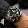 . Часы имеют сертификат COSCСертификат COSCОфициальный сертификат, подтверждающий то, что часы ходят с особо высокой точностью. Для получения документа часы подвергаются тестовым испытаниям, разработанным швейцарским институтом тестирования хронометров COSC. Допустимая норма для механических часов -4/+6 секунд в день, для кварцевых моделей +/- 0,07 секунд в день.. Стрелки и метки с люминесцентным покрытиемЛюминесцентное покрытиеПозволяет считывать показания времени в темноте. Производители наносят на стрелки, часовые индексы, безель или поверхность циферблата светонакопительный состав, дающий холодное свечение.. Шкала тахиметраТахиметрРазмеченная шкала, располагается на ободке или безеле часов. Тахиметр позволяет рассчитать скорость на определённом участке пути, расстояние измеряется в километрах или милях. на циферблате. Окошко даты находится в положении 6 часов. Силиконовый ремешок с раскладной застёжкойРаскладная застёжкаТакой тип застёжки используется только на браслетах из металла. Она никогда не раскрывается полностью, происходит разделение на 2 и более частей. Раскладывающая застёжка снизит вероятность потери часов к минимуму..
