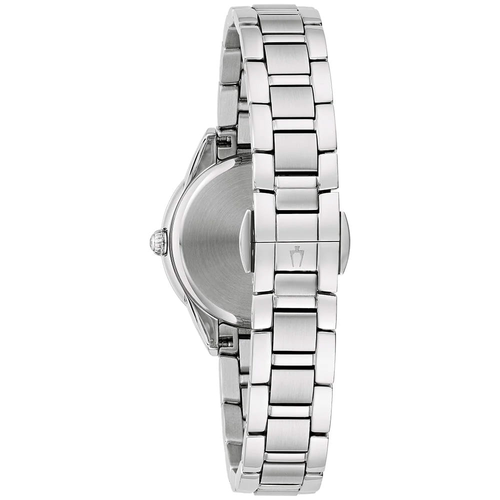 Женские кварцевые часы Bulova Sutton 96R253 – отражающий идеальное сочетание современного дизайна, надёжности и функциональности. Элегантный облик станет превосходным завершением образа, наделив его индивидуальным характером. Корпус из нержавеющей стали серебристого цвета, диаметром 28 мм идеально сбалансирован и элегантен. Сапфировое стеклоСапфировое стеклоПрочный и надёжный материал из кристалла сапфира синтетического происхождения, характеризующийся особой твёрдостью и устойчивостью к царапинам и повреждениям. защищает циферблат от царапин и устойчивое к механическим повреждениям. БезельБезельВнешний ободок, закрепляющий стекло. В спортивных часах так называется поворотное кольцо с делениями на циферблате, выполняет роль таймера – замеряет отрезки времени на шкале. Неподвижный безель – элемент декора. Однонаправленно вращающийся безель на дайверских часах позволяет фиксировать моменты погружения и выныривания на поверхность. украшен бриллиантами. Стальной браслет на застёжке-бабочке с кнопкамиЗастёжка "бабочка"Такой вид застёжки дополняется предохранителями, помогающими избежать случайного раскрытия браслета. Обладают изящным исполнением. обеспечивает комфортное ношение. Водозащита 30 метров позволит защитить корпус от случайных брызг или капель дождя. Эта модель – отличный выбор для тех, кто ищет сочетание стиля, качества и функциональности. Часы станут не только полезным аксессуаром, но и выразительным элементом вашего имиджа.