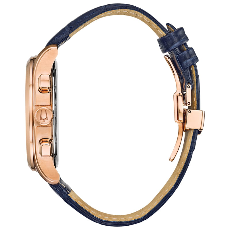 Мужские кварцевые часы-хронографХронографФункция позволяет измерять отрезки времени с особой точностью: часы, минуты, секунды. Верным признаком хронографа является наличие на циферблате 3 дополнительных окошек-счётчиков. Bulova Classic 97B170  – отражающий идеальное сочетание современного дизайна, надёжности и функциональности. Элегантный облик станет превосходным завершением образа, наделив его индивидуальным характером. Корпус из нержавеющей стали с IP-покрытиемIP-покрытиеМетод ионного напыления. Демонстрирует повышенную устойчивость к истиранию, окислению и химическим веществам. Под воздействием высокого давления и температуры около 1500°C молекулы металла надёжно соединяются с частицами корпуса часов. золотистого цвета, диаметром 46.5 мм идеально сбалансирован и элегантен. Минеральное стеклоМинеральное стеклоМинеральное стекло представляет собой искусственно выращенный минерал кварца. Такое стекло отличается особой устойчивостью к повреждениям и царапинам. Уступает по некоторым качествам сапфировому стеклу. защищает циферблат от царапин и устойчивое к мелким механическим повреждениям. Шкала тахиметраТахиметрРазмеченная шкала, располагается на ободке или безеле часов. Тахиметр позволяет рассчитать скорость на определённом участке пути, расстояние измеряется в километрах или милях. на циферблате. Кожаный ремешок на застёжке-бабочке с кнопкамиЗастёжка "бабочка"Такой вид застёжки дополняется предохранителями, помогающими избежать случайного раскрытия браслета. Обладают изящным исполнением.  обеспечивает комфортное ношение. Стрелки с люминесцентным покрытиемЛюминесцентное покрытиеПозволяет считывать показания времени в темноте. Производители наносят на стрелки, часовые индексы, безель или поверхность циферблата светонакопительный состав, дающий холодное свечение. позволяющие легко определять время даже в темноте. Водозащита 30 метров позволит защитить корпус от случайных брызг или капель дождя. Эта модель – отличный выбор для тех, кто ищет сочетание стиля, качества и функциональности. Часы станут не только полезным аксессуаром, но и выразительным элементом вашего имиджа.