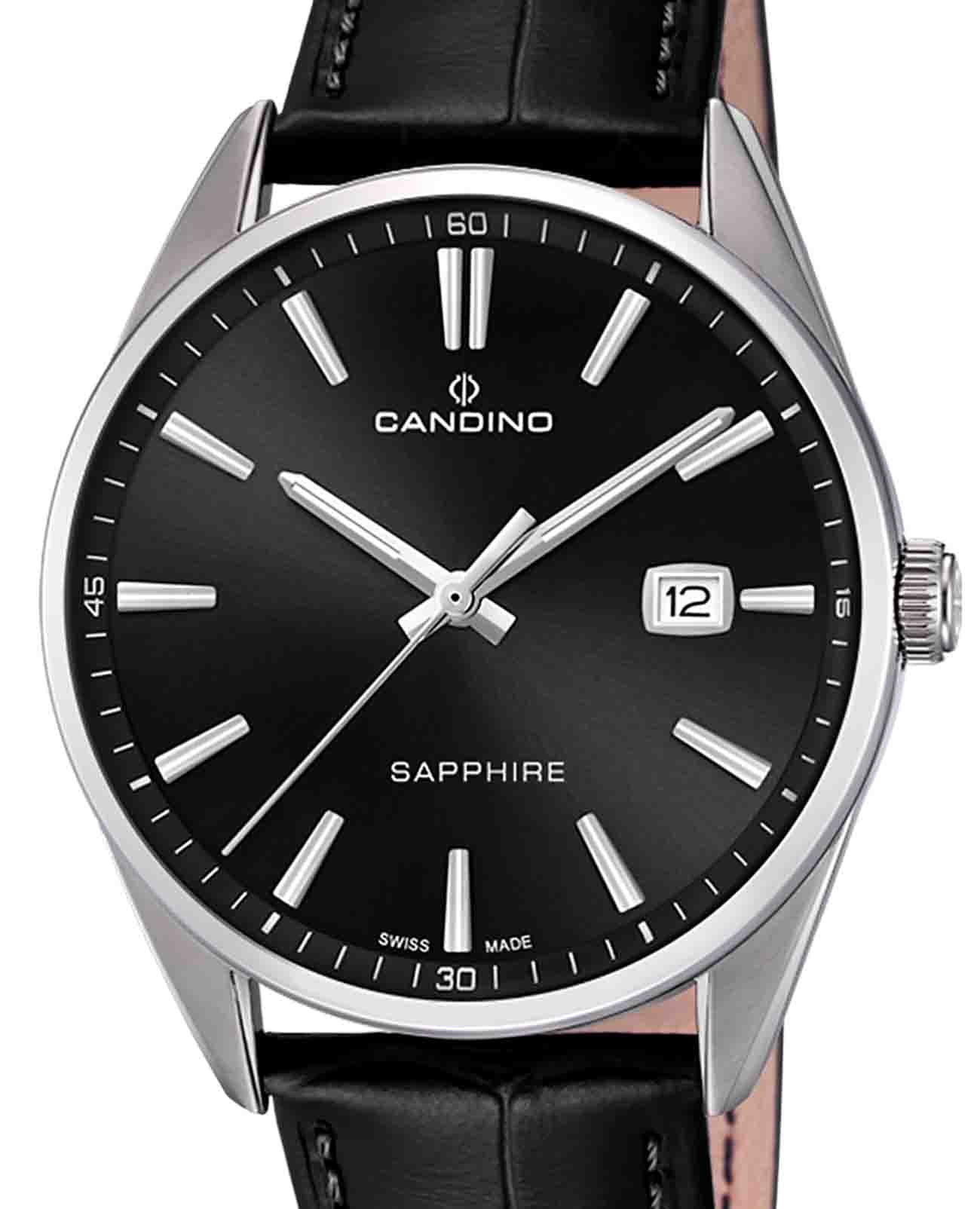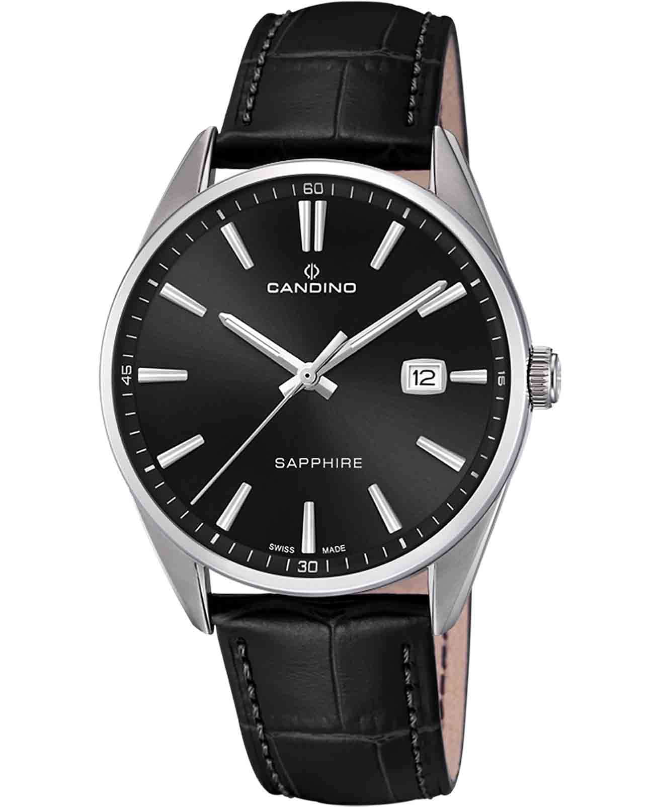 Мужские наручные часы Candino Couple C4622/D сочетают в себе классический дизайн и надежность швейцарского качества. Модель обладает круглым корпусом, изготовленным из нержавеющей стали марки 316L, что обеспечивает высокую устойчивость к коррозии и механическим повреждениям . Корпус оснащен сапфировым стекломСапфировое стеклоПрочный и надёжный материал из кристалла сапфира синтетического происхождения, характеризующийся особой твёрдостью и устойчивостью к царапинам и повреждениям., которое гарантирует защиту от царапин и других внешних воздействий . Часы имеют кожаный ремешок черного цвета, обеспечивающий комфортное ношение в течение дня . Циферблат черного цвета дополнен окном даты, расположенном на позиции «3 часа», что добавляет удобства при повседневном использовании . Часы оснащены кварцевым механизмом, который известен своей точностью и минимальной потребностью в обслуживании. Погрешность хода составляет около 20 секунд в месяц, что гарантирует надежность показаний времени . Водонепроницаемость модели достигает 5 атмосфер (50 метров), что позволяет использовать часы в условиях легкого контакта с водой, например, во время мытья рук или дождя, но не рекомендуется для плавания или дайвинга . Модель Candino Classic C4622/A станет идеальным выбором для ценителей классического стиля и практичности в повседневной жизни.