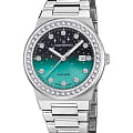 Женские наручные часы Candino Lady Elegance Sparkling Date C4749/2 с надёжным кварцевым механизмом. Корпус и браслет часов изготовлены из нержавеющей стали. Сапфировое стеклоСапфировое стеклоПрочный и надёжный материал из кристалла сапфира синтетического происхождения, характеризующийся особой твёрдостью и устойчивостью к царапинам и повреждениям. повышенной прозрачности, устойчивое к мелким механическим повреждениям. Стальной браслет на раскладной застёжкеРаскладная застёжкаТакой тип застёжки используется только на браслетах из металла. Она никогда не раскрывается полностью, происходит разделение на 2 и более частей. Раскладывающая застёжка снизит вероятность потери часов к минимуму.. Стрелки и метки с люминесцентным покрытиемЛюминесцентное покрытиеПозволяет считывать показания времени в темноте. Производители наносят на стрелки, часовые индексы, безель или поверхность циферблата светонакопительный состав, дающий холодное свечение.. Двухцветный циферблат с россыпью звёзд и безельБезельВнешний ободок, закрепляющий стекло. В спортивных часах так называется поворотное кольцо с делениями на циферблате, выполняет роль таймера – замеряет отрезки времени на шкале. Неподвижный безель – элемент декора. Однонаправленно вращающийся безель на дайверских часах позволяет фиксировать моменты погружения и выныривания на поверхность. инкрустированы цирконами. Класс водозащиты: 50 метров, позволит защитить корпус от случайных брызг или капель дождя. Окошко даты находится в положении 3 часа.