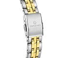 Женские механические наручные часы с автоподзаводом Candino Automatic Ladies C4771/4. Корпус и браслет часов изготовлены из нержавеющей стали. Сапфировое стеклоСапфировое стеклоПрочный и надёжный материал из кристалла сапфира синтетического происхождения, характеризующийся особой твёрдостью и устойчивостью к царапинам и повреждениям. повышенной прозрачности, устойчивое к мелким механическим повреждениям. Стальной браслет с частичным PVD-покрытиемPVDУльтратонкое покрытие наносится в технике вакуумного напыления, сочетает в себе нитрид титана особой прочности со слоем золота или оксида хрома. Несёт в себе декоративную или защитную функцию. на раскладной застёжкеРаскладная застёжкаТакой тип застёжки используется только на браслетах из металла. Она никогда не раскрывается полностью, происходит разделение на 2 и более частей. Раскладывающая застёжка снизит вероятность потери часов к минимуму.. Стрелки с люминесцентным покрытиемЛюминесцентное покрытиеПозволяет считывать показания времени в темноте. Производители наносят на стрелки, часовые индексы, безель или поверхность циферблата светонакопительный состав, дающий холодное свечение.. Циферблат инкрустирован кристаллами. Класс водозащиты: 50 метров, позволит защитить корпус от случайных брызг или капель дождя. Окошко даты находится в положении 3 часа.