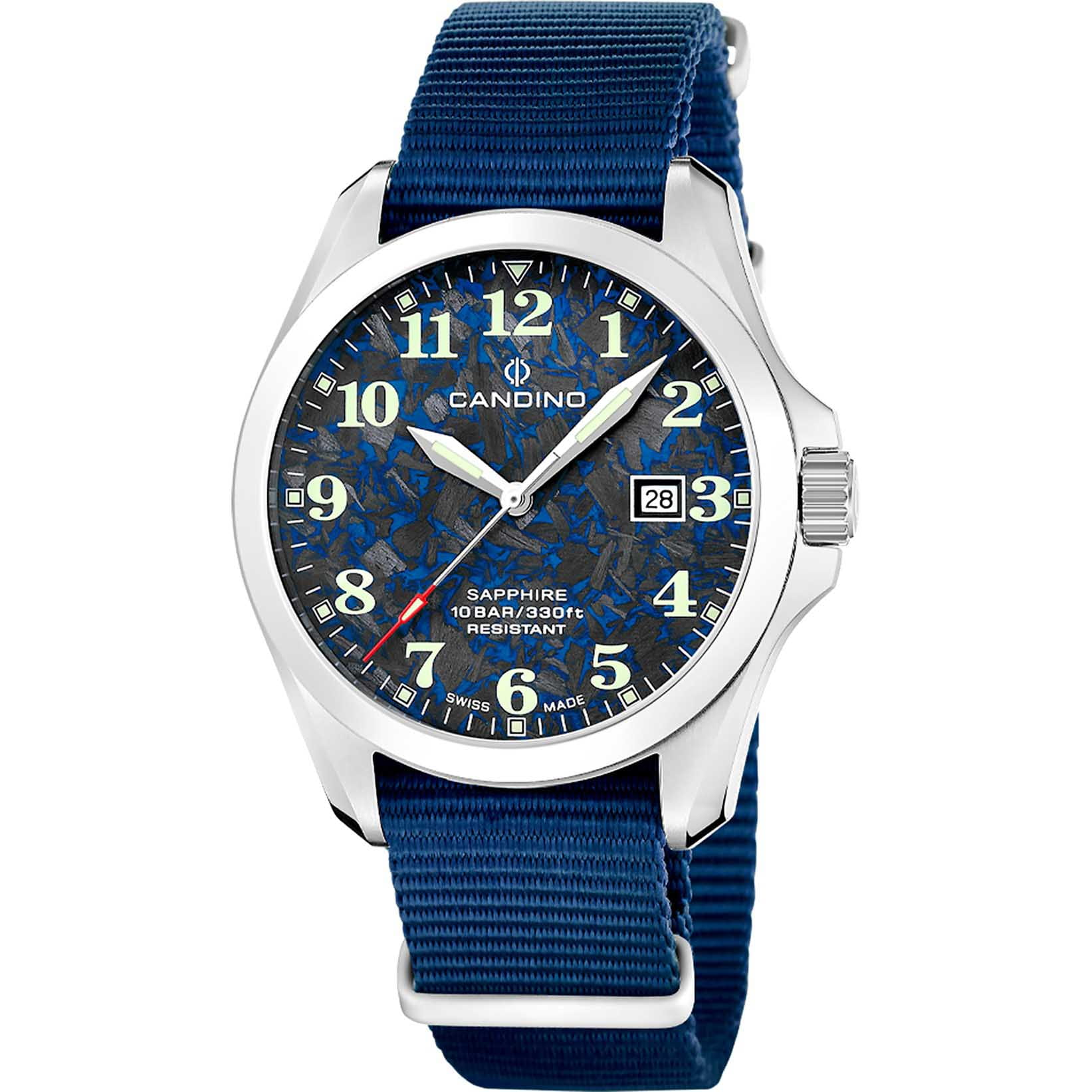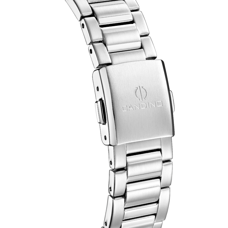 Мужские кварцевые часы Candino C4785/2 — это стильный и надёжный аксессуар швейцарского производства, подчёркивающий индивидуальность и хороший вкус. Корпус круглой формы выполнен из нержавеющей стали и защищён сапфировым стекломСапфировое стеклоПрочный и надёжный материал из кристалла сапфира синтетического происхождения, характеризующийся особой твёрдостью и устойчивостью к царапинам и повреждениям., устойчивым к царапинам. Циферблат оформлен арабскими цифрами, а стрелки и метки оснащены люминесцентным покрытиемЛюминесцентное покрытиеПозволяет считывать показания времени в темноте. Производители наносят на стрелки, часовые индексы, безель или поверхность циферблата светонакопительный состав, дающий холодное свечение., обеспечивающим хорошую читаемость в темноте. Окошко даты расположено на отметке 3 часа, что делает часы не только элегантными, но и функциональными. Часы оснащены стальным браслетом серебристого цвета с раскладной застёжкойРаскладная застёжкаТакой тип застёжки используется только на браслетах из металла. Она никогда не раскрывается полностью, происходит разделение на 2 и более частей. Раскладывающая застёжка снизит вероятность потери часов к минимуму., который обеспечивает комфорт при ношении. Водонепроницаемость 100 м позволяет использовать часы в повседневных условиях, включая плавание. Модель сочетает в себе классический стиль, швейцарское качество и надёжность, оставаясь универсальным выбором для любого случая. В комплекте предусмотрены два ремешка из кожи и текстиля.