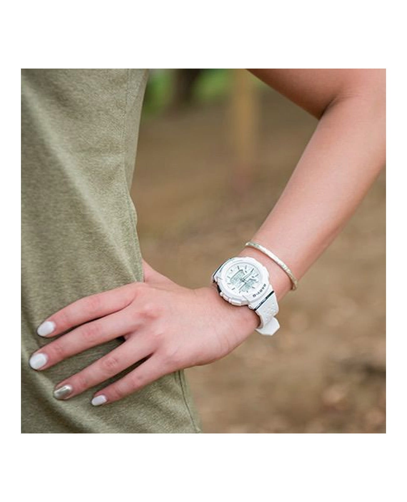 Японские женские часы-хронографХронографФункция позволяет измерять отрезки времени с особой точностью: часы, минуты, секунды. Верным признаком хронографа является наличие на циферблате 3 дополнительных окошек-счётчиков. Casio Baby-G BGA-240-7A2 из коллекции Baby-G. Минеральное стеклоМинеральное стеклоМинеральное стекло представляет собой искусственно выращенный минерал кварца. Такое стекло отличается особой устойчивостью к повреждениям и царапинам. Уступает по некоторым качествам сапфировому стеклу. устойчивое к появлению царапин, обладающее высокой прозрачностью. Корпус часов изготовлен из полимерного материала. Светонакопительное необритовое покрытиеПодсветка NeobriteИспользование светонакопительных составов на основе сульфида цинка или алюмината стронция, яркий свет можно наблюдать на протяжении 6-10 часов после «зарядки» часов около источника света. продолжает светиться в темноте даже после непродолжительного пребывания на свету. Ударопрочный корпусУдаропрочный корпусМеханизм заключён в корпус, выполненный из современных материалов, устойчивых к ударам, механическим повреждениям и падению с высоты: инновационный пластик, карбон, нержавеющая сталь, титан. защищает механизм от ударов и вибрации. Функция Мирового времениМировое время Полезное часовое усложнение, отображающее время в основных городах и известных областях по всему миру, оно связано с часовыми поясами, удобно для путешественников и бизнесменов. . СекундомерСекундомерСекундоме́р — прибор, способный измерять интервалы времени с точностью до долей секунды. с точностью измерения 1/100 секунды и измерением до 23 часов 59 минут 59,99 cек. ТаймерТаймерОтсчитывает секунды в обратном направлении в заданном интервале времени. обратного отсчета (диапазон времени 24 часа), автоматический календарь, 12/24 отображение времени. Память на 60 этапов - измеренное общее время, прошедшее с начала тренировки или гонки, и промежуточное время можно сохранить с указанием даты и отобразить эти данные позже. 3 ежедневных будильникаБудильникБуди́льник — часы, в заданный момент времени подающие звуковой, световой и/или в редких случаях другой сигнал., один с функцией Snooze. Функция включения/отключения звука кнопок. Функция перемещения стрелок. Класс водозащиты: 100 метров, позволит плавать без погружения. Ремешок из полимерного материала на стандартной застежке.