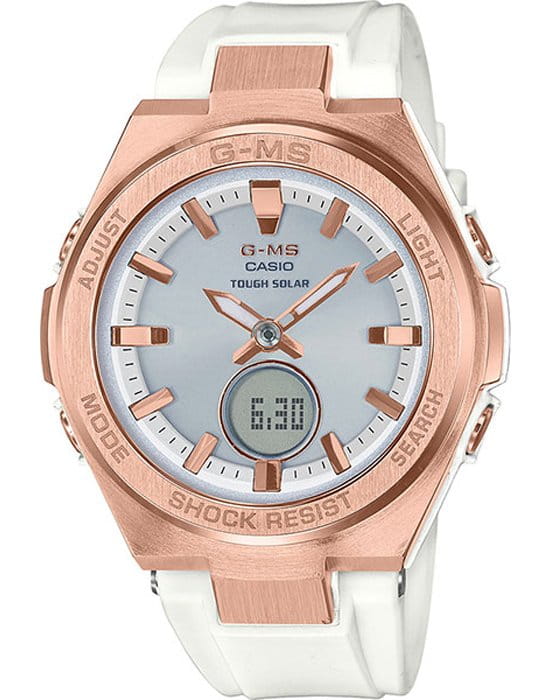 Наручные часы выглядят действительно стильно, гармонично сочетаются между собой цвета: белый, серебряный, золотистый. Аксессуар идеально подойдёт для завершения повседневного образа. Ударопрочный корпусУдаропрочный корпусМеханизм заключён в корпус, выполненный из современных материалов, устойчивых к ударам, механическим повреждениям и падению с высоты: инновационный пластик, карбон, нержавеющая сталь, титан. сделан из полимера в сочетании с нержавеющей сталью, такое исполнение повышает устойчивость к падениям и вибрации. Модель оснащена технологией питания от солнечного света - . Минеральное стекло противостоит образованию царапин. СветодиоднаяСветодиодная подсветкаСветодиодная или LED-подсветка обеспечивает появление яркого холодного свечения за счёт LED-элементов - маленьких лампочек. Они потребляют минимальное количество энергии, чаще всего можно встретить 1 светодиод, в нижней части циферблата. и люминесцентная подсветкаЛюминесцентное покрытиеПозволяет считывать показания времени в темноте. Производители наносят на стрелки, часовые индексы, безель или поверхность циферблата светонакопительный состав, дающий холодное свечение.. Белый полимерный ремешок. Секундомер, автоматический календарь, мировое времяМировое время Полезное часовое усложнение, отображающее время в основных городах и известных областях по всему миру, оно связано с часовыми поясами, удобно для путешественников и бизнесменов. , функция будильника. Габариты: 39 x 47,5 x 12,3 мм.