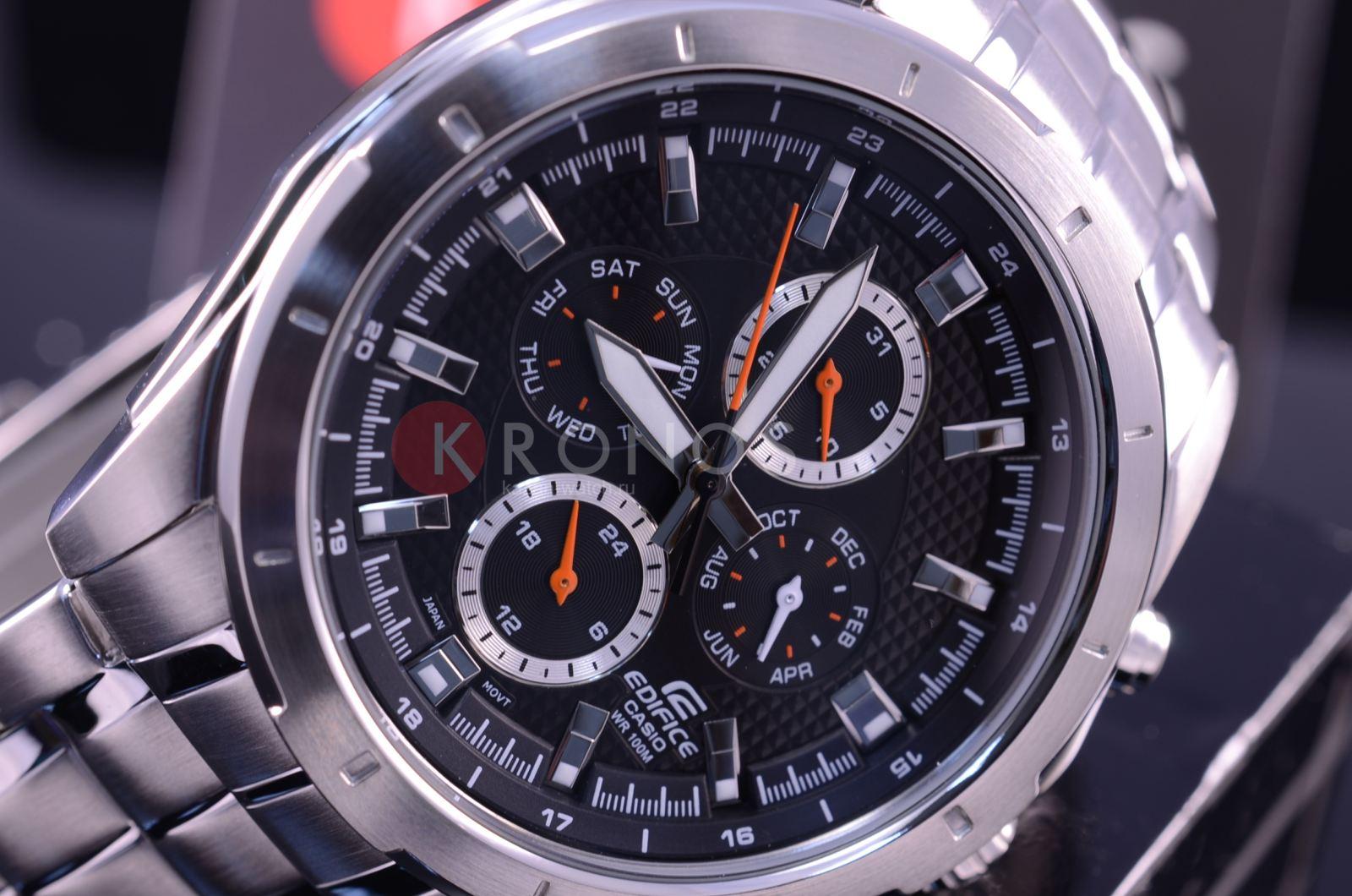 Мужские классические наручные часы Casio Edifice надежные и практичные. Кварцевый японский механизм Miyota. Точность хода не хуже -10 +15 сек./в месяц. Часы оснащены календарем и 24х часовым форматом времени. Циферблат черного цвета с контрастными индексами. Стрелки и индексы с светонакопительным нанесением. Корпус и браслет выполнены из высококачественной стали с антикоррозийными свойствами. Минеральное стекло устойчиво к появлению царапин Водонепроницаемость 100М. В часах можно плавать. Степень водонепроницаемости не является величиной, эквивалентной функциональной рабочей глубине.
