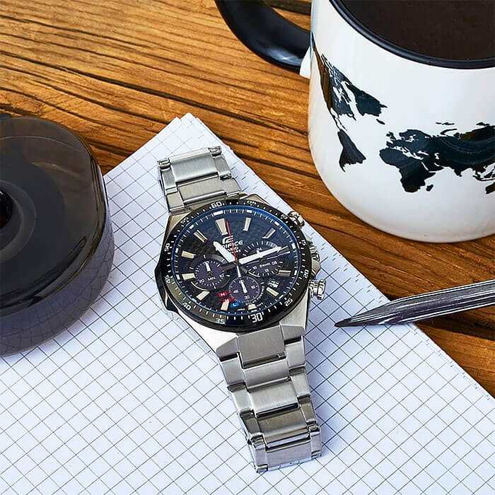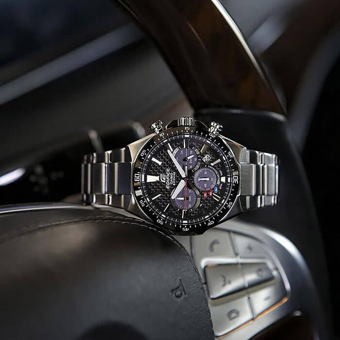Японские мужские часы из коллекции Edifice - ваше стильное дополнение к любому образу, стальной хронографХронографФункция позволяет измерять отрезки времени с особой точностью: часы, минуты, секунды. Верным признаком хронографа является наличие на циферблате 3 дополнительных окошек-счётчиков. будет уместно смотреться на любом мероприятии.