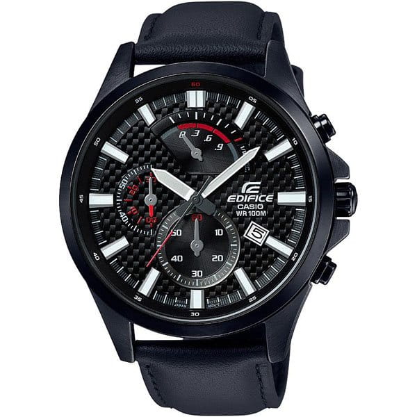 Стильные японские наручные кварцевые мужские часы. Круглый корпус часов выполнен из стали с антикоррозийными свойствами с IP покрытием. Черный карбоновый циферблат с контрастными элементами дизайна. Водонепроницаемость 10 ATM. Минеральное стекло, устойчивое к появлению царапин. Ремешок из натуральной кожи черного цвета. Часы оснащены функцией хронографа.