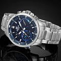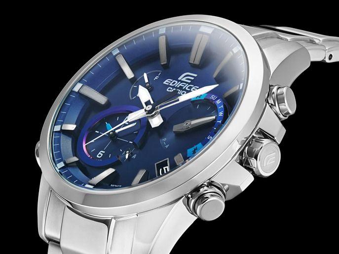 Современные, функциональные наручные кварцевые мужские часы. Круглый корпус выполнены из высокопрочной стали. Синий фон циферблата и стальные элементы дизайна. Водонепроницаемость часов составляет 10 ATM. Сферическое минеральное стекло, устойчивое к появлению царапин. Браслет из прочной нержавеющей стали надежный, прочный и элегантный. Bluetooth, солнечная батарейка, неоновый дисплей, функция мирового времени, функция секундомера, автоматический календарь.