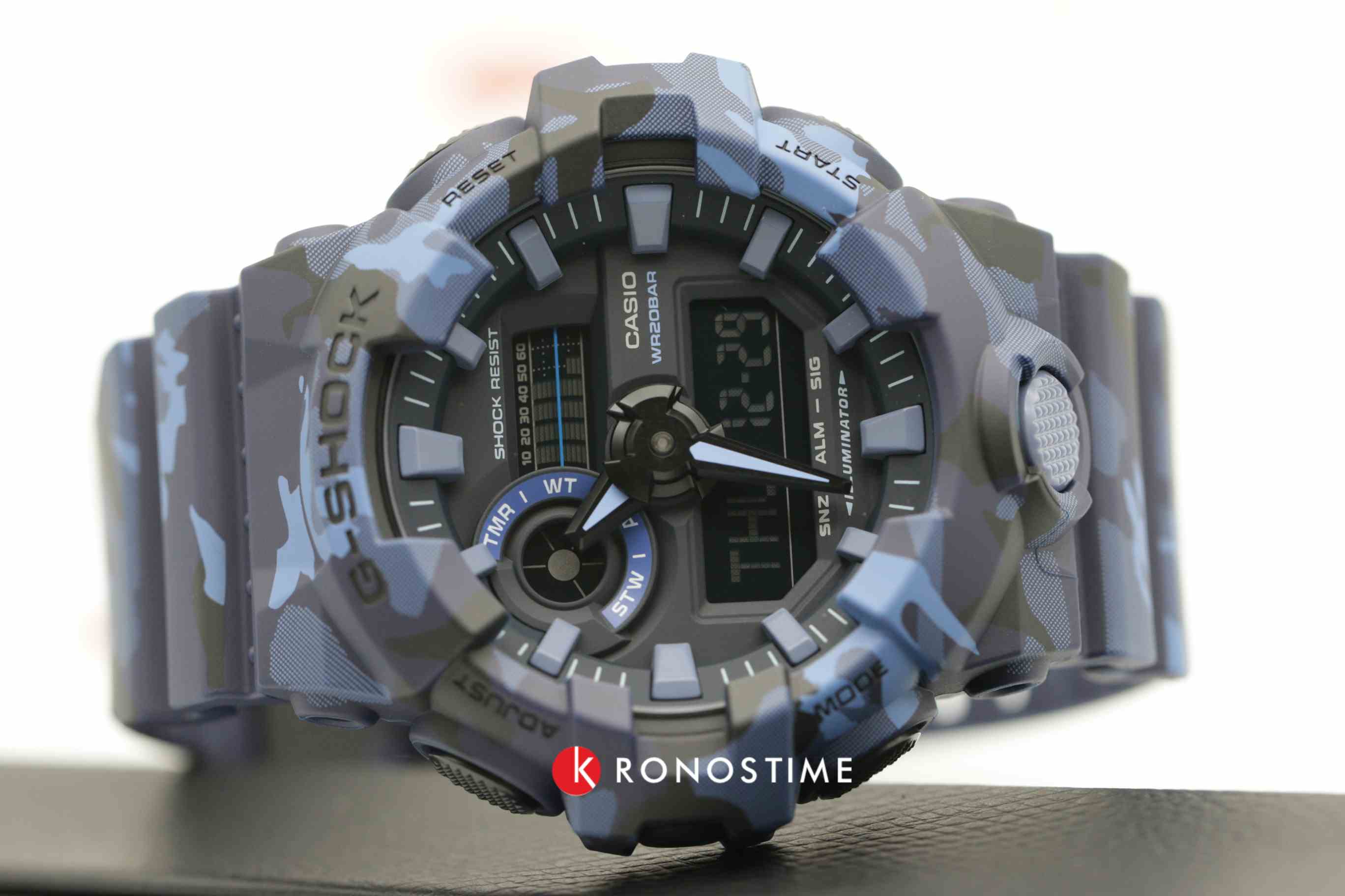 Японские мужские часы из коллекции G-Shock представляют собой стильную модель серии GA-700, которую по достоинству оценят спортивные и активные люди. Массивный циферблат с крупной индикацией времени отлично смотрится на мужском запястье, такие часы станут интересной деталью образа благодаря необычному камуфляжному оформлению синего оттенка. Практичная и функциональная модель имеет полимерный ударопрочный корпусУдаропрочный корпусМеханизм заключён в корпус, выполненный из современных материалов, устойчивых к ударам, механическим повреждениям и падению с высоты: инновационный пластик, карбон, нержавеющая сталь, титан., которому не страшны повреждения и падения с высоты. Высокоточный кварцевый механизм японского производства. Эксплуатационный срок батарейки - 5 лет. Яркая автоматическая светодиодная подсветкаСветодиодная подсветкаСветодиодная или LED-подсветка обеспечивает появление яркого холодного свечения за счёт LED-элементов - маленьких лампочек. Они потребляют минимальное количество энергии, чаще всего можно встретить 1 светодиод, в нижней части циферблата. белого цвета. Минеральное стеклоМинеральное стеклоМинеральное стекло представляет собой искусственно выращенный минерал кварца. Такое стекло отличается особой устойчивостью к повреждениям и царапинам. Уступает по некоторым качествам сапфировому стеклу.. Водонепроницаемость 200 метров. 12/24-часовая система отображения времени. Прочный пластиковый ремешок. Ударопрочный корпусУдаропрочный корпусМеханизм заключён в корпус, выполненный из современных материалов, устойчивых к ударам, механическим повреждениям и падению с высоты: инновационный пластик, карбон, нержавеющая сталь, титан. защищает механизм от ударов и вибрации. Циферблат подсвечивается ярким светодиодомСветодиодная подсветкаСветодиодная или LED-подсветка обеспечивает появление яркого холодного свечения за счёт LED-элементов - маленьких лампочек. Они потребляют минимальное количество энергии, чаще всего можно встретить 1 светодиод, в нижней части циферблата.. Мировое времяМировое время Полезное часовое усложнение, отображающее время в основных городах и известных областях по всему миру, оно связано с часовыми поясами, удобно для путешественников и бизнесменов. – 48 городов (31 часовой пояс), всемирное координированное время (UTCUTCВсемирное кординационное время, не имеющее привязки к географическому положению Гринвича, основывается на атомном отсчёте времени. Регулировка времени осуществляется более точно, чем устаревшее GMT.
