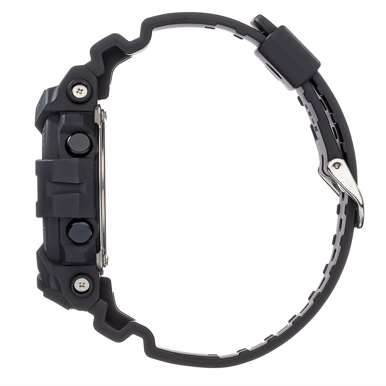 Часы в лаконичном исполнении с продуманными динамичными элементами стильно смотрятся благодаря сочетанию чёрного цвета и хромового циферблата. Модель получила уменьшенный ударопрочный корпусУдаропрочный корпусМеханизм заключён в корпус, выполненный из современных материалов, устойчивых к ударам, механическим повреждениям и падению с высоты: инновационный пластик, карбон, нержавеющая сталь, титан. из полимерного материала, если сравнивать с аксессуарами серии GA-700. Кнопка светодиодной подсветкиСветодиодная подсветкаСветодиодная или LED-подсветка обеспечивает появление яркого холодного свечения за счёт LED-элементов - маленьких лампочек. Они потребляют минимальное количество энергии, чаще всего можно встретить 1 светодиод, в нижней части циферблата. вынесена в нижнюю часть, обеспечивая удобное пользование. Японский кварцевый механизм с точностью хода +/- 15 секунд в месяц. Батарейка рассчитана на 3 года службы. Включение и отключение звука кнопок. Ремешок из высококачественного пластика. Закаленное минеральное стекло. Стрелки с люминесцентным покрытиемЛюминесцентное покрытиеПозволяет считывать показания времени в темноте. Производители наносят на стрелки, часовые индексы, безель или поверхность циферблата светонакопительный состав, дающий холодное свечение.. Водонепроницаемость до 200 метров. Автоматический календарь до 2099 года, таймер, хронографХронографФункция позволяет измерять отрезки времени с особой точностью: часы, минуты, секунды. Верным признаком хронографа является наличие на циферблате 3 дополнительных окошек-счётчиков., 5 будильников, секундомер, мировое времяМировое время Полезное часовое усложнение, отображающее время в основных городах и известных областях по всему миру, оно связано с часовыми поясами, удобно для путешественников и бизнесменов. . Габариты: 54,1 x 48,6 x 15,5 мм.