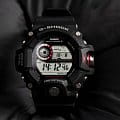 Мужские японские часы с минеральным стекломМинеральное стеклоМинеральное стекло представляет собой искусственно выращенный минерал кварца. Такое стекло отличается особой устойчивостью к повреждениям и царапинам. Уступает по некоторым качествам сапфировому стеклу. Casio G-Shock GW-9400-1E из коллекции G-Shock представляют собой многофункциональный помощник с брутальным дизайном. Модель серии Rangeman отличается стильной чёрной расцветкой с красными деталями, брендовый аксессуар с массивными элементами оформления точно станет запоминающейся деталью образа. Наручные часы оснащены различными функциями, которые по достоинству оценят любители путешествовать: отображение восхода и заката солнца, термометр -10°C /+60°C, барометр, альтиме́трАльтиме́трАльтиме́тр (или высотоме́р) – прибор для измерения высоты над уровнем моря. Необходим при ориентировании в горах, в т.ч. в условиях плохой видимости; оповещает о перепадах высот, о достижении заданной точки и т.д., таймерТаймерОтсчитывает секунды в обратном направлении в заданном интервале времени., мировое времяМировое время Полезное часовое усложнение, отображающее время в основных городах и известных областях по всему миру, оно связано с часовыми поясами, удобно для путешественников и бизнесменов. , 5 будильниковБудильникБуди́льник — часы, в заданный момент времени подающие звуковой, световой и/или в редких случаях другой сигнал., секундомерСекундомерСекундоме́р — прибор, способный измерять интервалы времени с точностью до долей секунды., цифровой компас. Японский кварцевый механизм. Технология Tough SolarTough SolarТехнология основана на подзарядке аккумулятора от источника солнечного света, специальная панель улавливает солнечные лучи и преобразует их в энергию для работы часов. Достаточно пары минут нахождения на солнце для функционирования часов в течении суток.. Индикатор уровня заряда аккумулятора. Ударопрочный корпусУдаропрочный корпусМеханизм заключён в корпус, выполненный из современных материалов, устойчивых к ударам, механическим повреждениям и падению с высоты: инновационный пластик, карбон, нержавеющая сталь, титан. из пластика. Водозащита 20 бар. Автоматическая светодиодная подсветкаСветодиодная подсветкаСветодиодная или LED-подсветка обеспечивает появление яркого холодного свечения за счёт LED-элементов - маленьких лампочек. Они потребляют минимальное количество энергии, чаще всего можно встретить 1 светодиод, в нижней части циферблата.. Габариты: 55,2 x 53,5 x 18,2 мм.