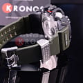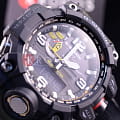 Японские мужские часы из коллекции G-Shock помогут завершить повседневный образ и порадуют владельца широким функционалом. Наручные часы серии Mudmaster привлекают брутальным дизайном с внушительным ударопрочным корпусомУдаропрочный корпусМеханизм заключён в корпус, выполненный из современных материалов, устойчивых к ударам, механическим повреждениям и падению с высоты: инновационный пластик, карбон, нержавеющая сталь, титан.. Они выполнены в стиле милитари, сочетая в себе узнаваемое оформление, прочные материалы и современные технологии. Привлекательно смотрится полимерный ремешок цвета хаки, обеспечивающий комфортное ношение. Циферблат защищает сапфировое стеклоСапфировое стеклоПрочный и надёжный материал из кристалла сапфира синтетического происхождения, характеризующийся особой твёрдостью и устойчивостью к царапинам и повреждениям. с антибликовым покрытием, устойчивое к возникновению царапин на поверхности. Корпус из высококачественного пластика. Двойная электролюминесцентная подсветкаЭлектролюминесцентная подсветкаЭлектролюминесцентная панель устанавливается под ЖК-экраном часов, при нажатии кнопки электричество преобразуется в свет за счёт подачи напряжения на атомы фосфора, такой тип подсветки позволяет освещать весь циферблат.. Питание от солнечной батареи Tough SolarTough SolarТехнология основана на подзарядке аккумулятора от источника солнечного света, специальная панель улавливает солнечные лучи и преобразует их в энергию для работы часов. Достаточно пары минут нахождения на солнце для функционирования часов в течении суток.. Индикатор заряда батарейки. Устойчивость к грязи и пыли. Включение и выключение звука кнопок. Функции: цифровой компас, барометр, термометр от -10° С до +60°С, UTCUTCВсемирное кординационное время, не имеющее привязки к географическому положению Гринвича, основывается на атомном отсчёте времени. Регулировка времени осуществляется более точно, чем устаревшее GMT.