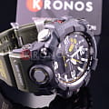 , будильникБудильникБуди́льник — часы, в заданный момент времени подающие звуковой, световой и/или в редких случаях другой сигнал., автоматический календарь до 2099 года, мировое времяМировое время Полезное часовое усложнение, отображающее время в основных городах и известных областях по всему миру, оно связано с часовыми поясами, удобно для путешественников и бизнесменов. , таймерТаймерОтсчитывает секунды в обратном направлении в заданном интервале времени., хронографХронографФункция позволяет измерять отрезки времени с особой точностью: часы, минуты, секунды. Верным признаком хронографа является наличие на циферблате 3 дополнительных окошек-счётчиков.. Габариты: 53,5 x 58,6 x 15,5 мм.
